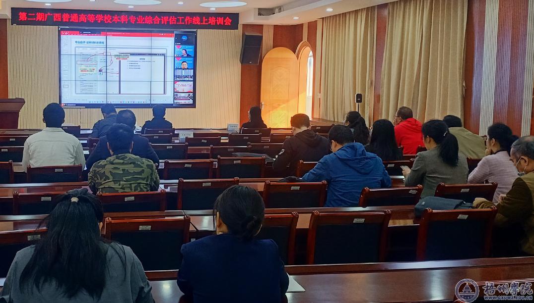 3月6日上午,自治区教育厅举办了第二期广西普通高校本科专业综合评估工作线上培训会。根据自治区教育厅第三批和第四批专业综合评估安排,学校组织相关的二级学院领导、参评专业负责人及数据填报教师在明理楼七楼视频会议室参加了线上培训会。教务处负责人和评估与建设科全体人员参加了培训学习。