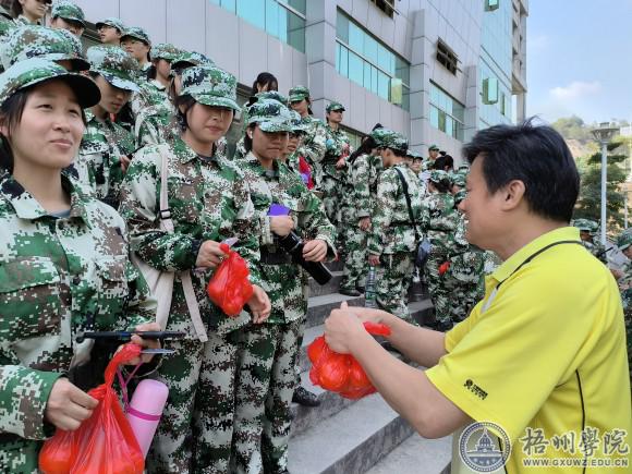 陈金辉书记一行向参训学生送上了清甜的沃柑,希望同学们继续以高昂的斗志和饱满的热情完成军训任务,同时也要提高防诈反诈意识,增强防诈反诈能力,维护自身安全。