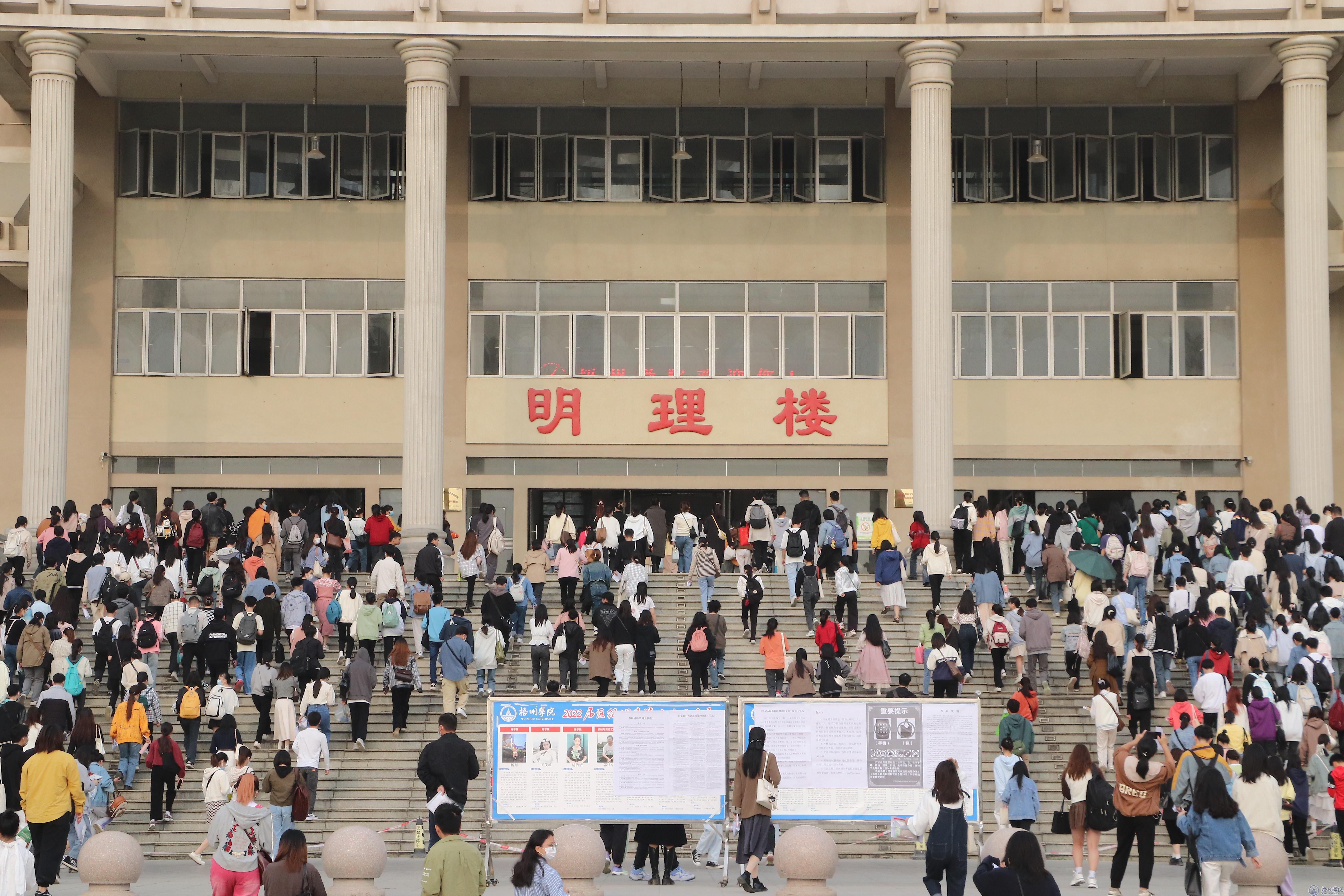 考试前一天,明理楼相应出入口已拉起警戒线。考前,考生有序在明理楼前排队等待,在临考前30分钟听从监考员的指示进入考场。考试过程中,监考老师认真负责、各职能部门工作人员坚守岗位,相互配合,为考生营造良好的考试环境。