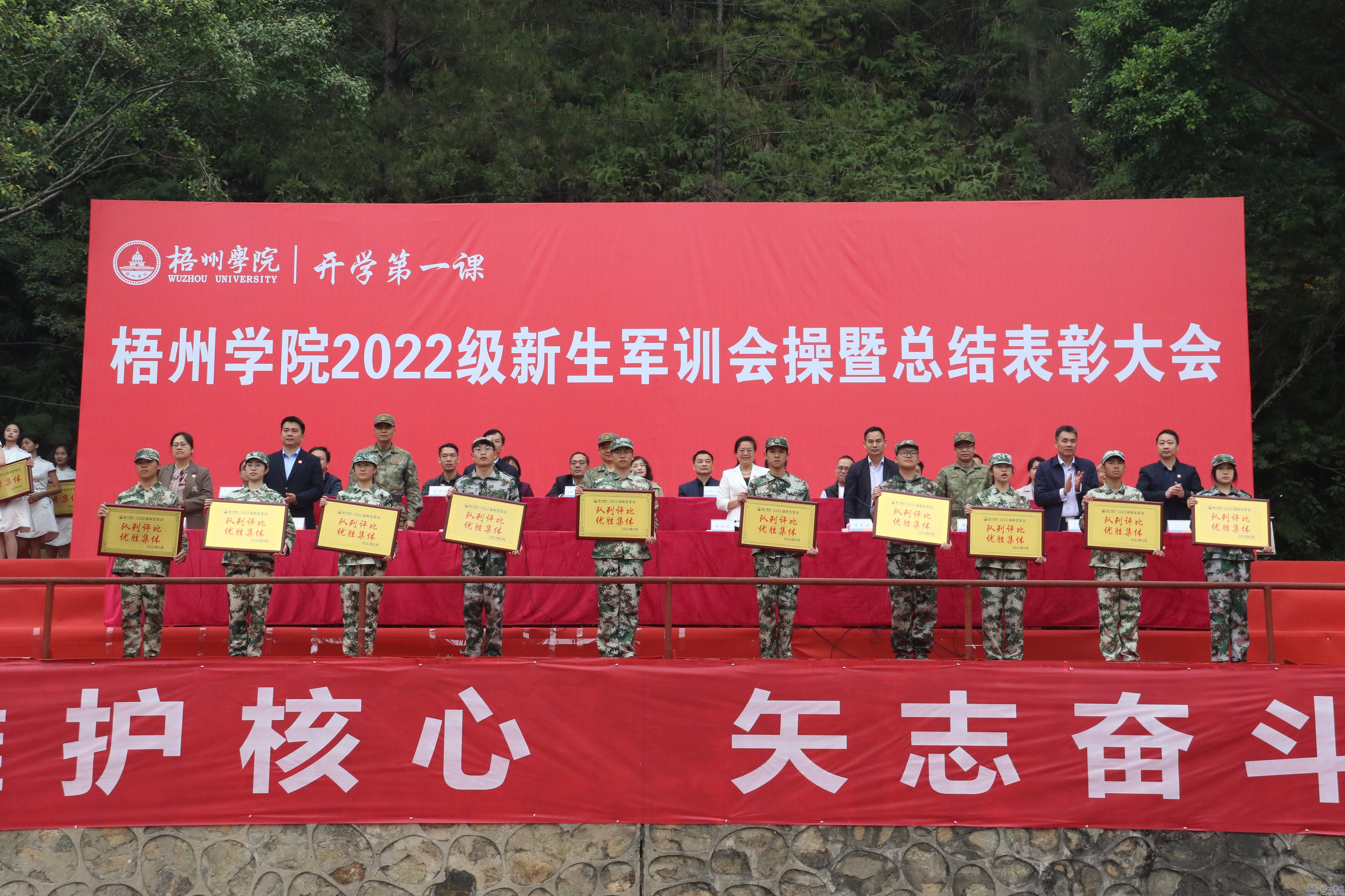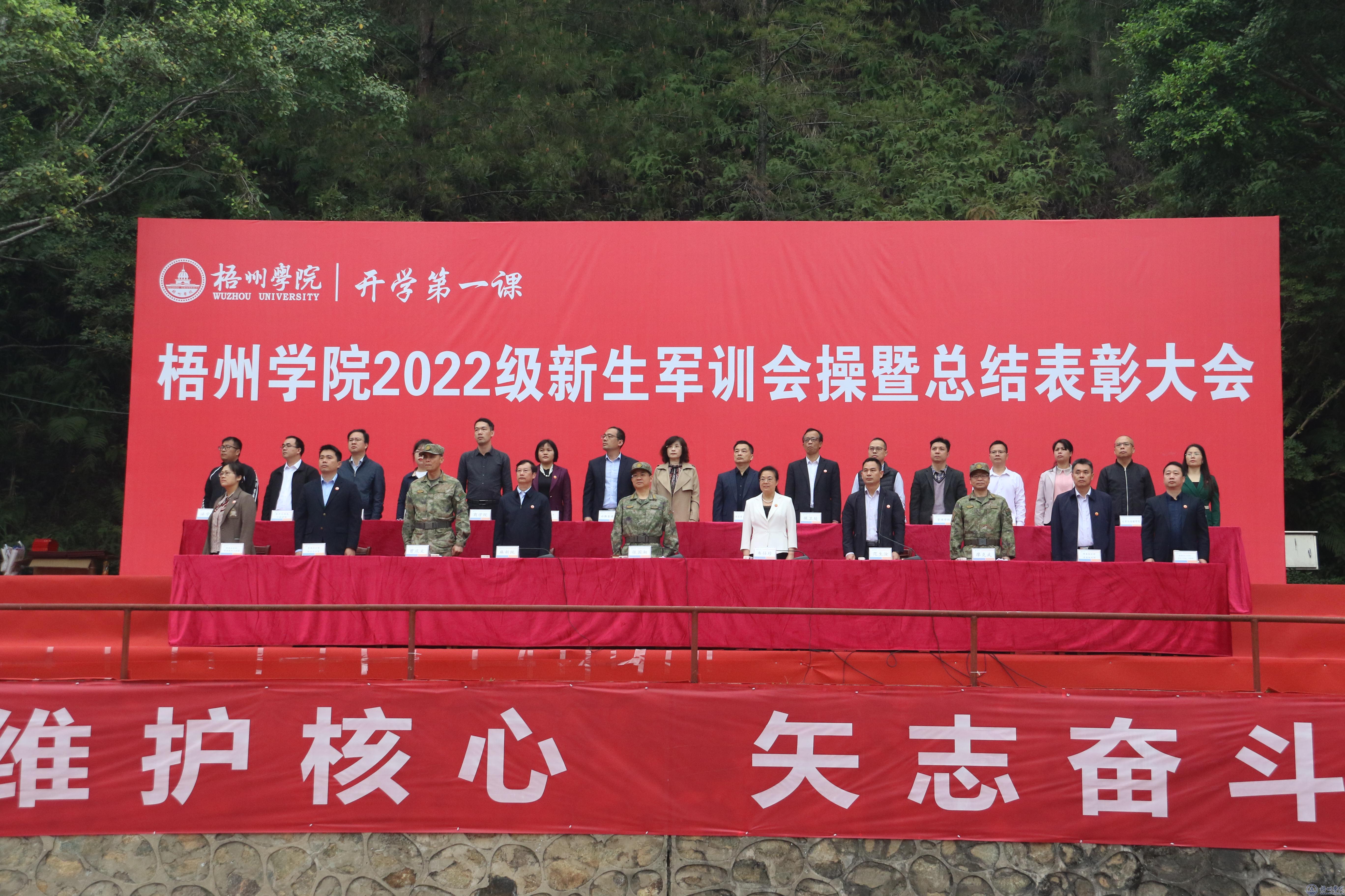 3月12日上午,学校在田径场举行“开学第一课”——2022级新生军训会操暨总结表彰大会。梧州军分区大校政治委员张国湘,我校党委书记韦仕珍、副校长麻新纯、副校长范生汝出席大会。梧州军分区战备建设处、万秀区武装部领导、梧州学院军训领导小组成员,2022级辅导员、班主任代表,全体2022级新生参加大会。大会由范生汝副校长主持。