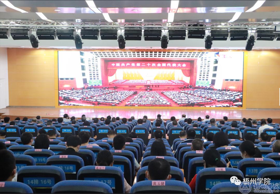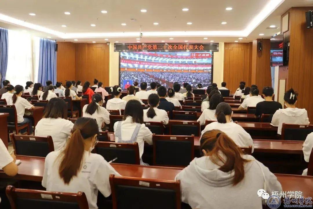 10月16日,中国共产党第二十次全国代表大会开幕会在北京隆重举行。学校领导韦仕珍、杨奔、玉振明、邱房贵、梁业华、宾月景;学校党委常委、党委委员、纪委委员;全体中层干部、全体科级干部;教工党员代表;学生党员代表齐聚一堂,集中收听收看了开幕会直播,认真聆听习近平同志在中国共产党第二十次全国代表大会的报告。各单位、各部门组织师生通过互联网、手机、电视、广播等多种渠道收听收看党的二十大开幕会。