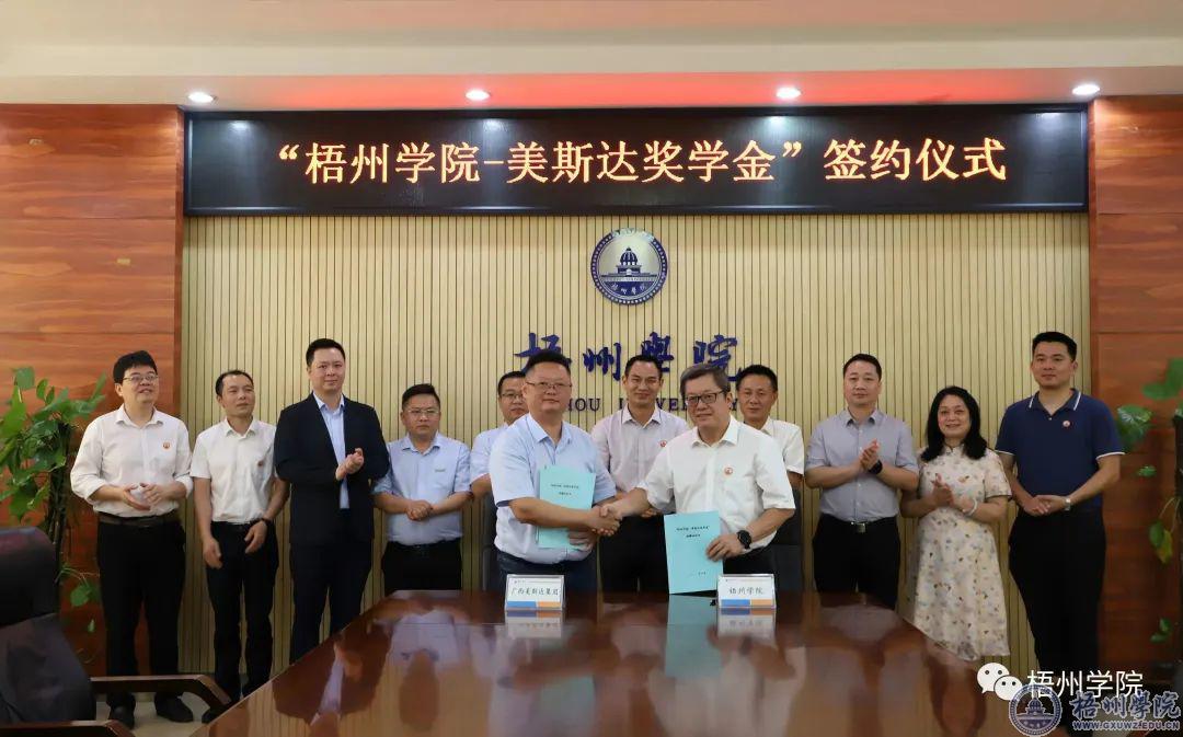 我校杰出校友黄康华向学校捐赠100万元,在母校设立“梧州学院—美斯达奖学金”。6月24日上午,捐赠协议在明理楼八楼第二会议室举行。“梧州学院—美斯达奖学金”的设立旨在支持和促进梧州学院教育事业发展,促进校企文化交流,鼓励梧州学院在校学生努力学习、立志成才,用于专项奖励梧州学院全日制在读优秀学生。奖学金项目为期10年,每年捐赠奖金10万元。(官网 2022-06-24发布)