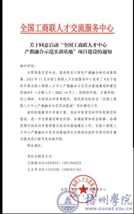 3月16日,根据全国工商联人才交流服务中心通知,经过院校申报、方案审核、线上调研、专家综合评审等程序,同意我校启动“全国工商联人才中心产教融合示范实训基地”项目建设工作。