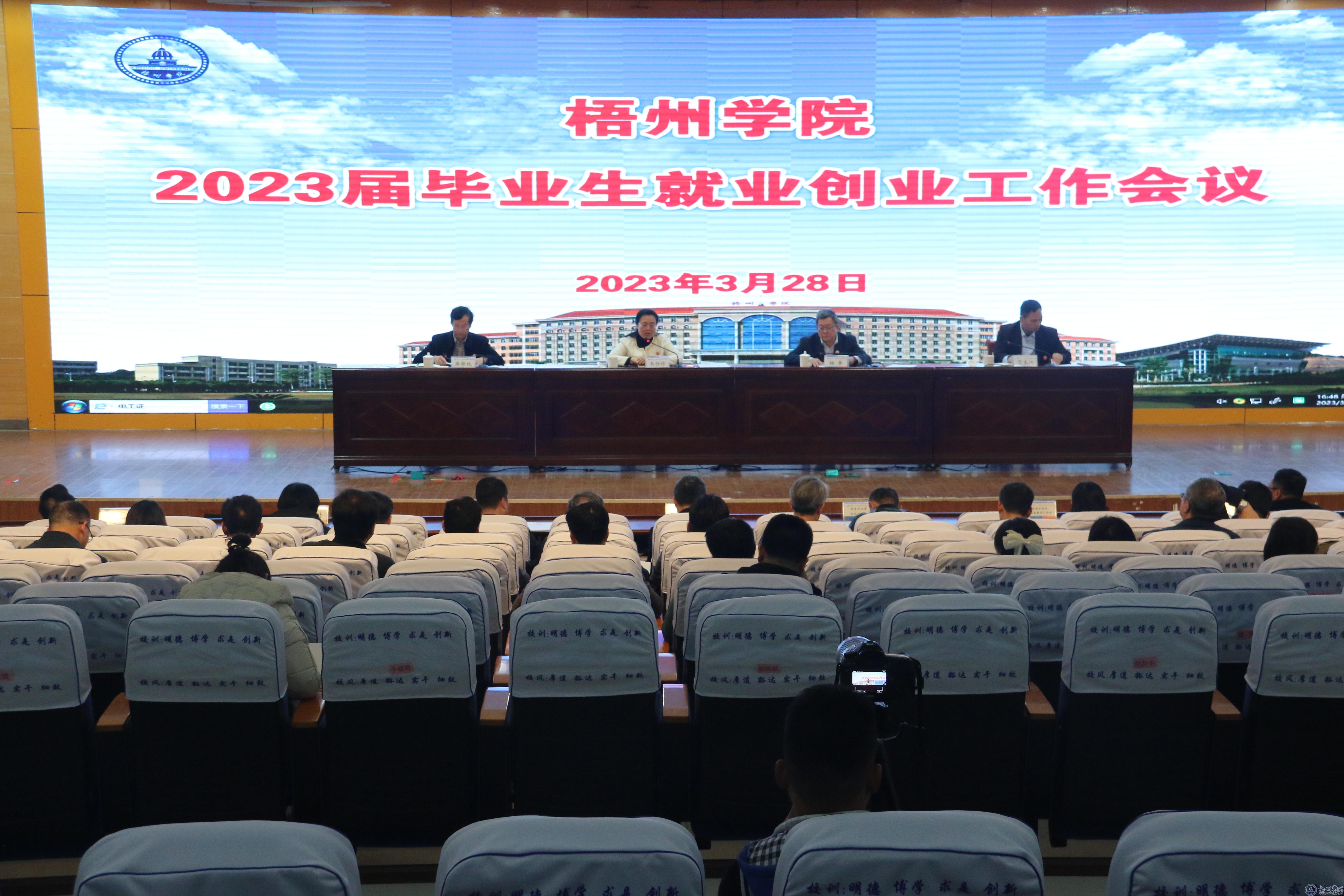 3月28日,学校在明理楼一楼学术报告厅召开2023届毕业生就业创业工作会议,全面总结回顾2022届毕业生就业创业工作,分析就业创业工作面临的新形势、新情况,对2023届毕业生就业创业工作进行动员和部署。学校领导韦仕珍、杨奔、麻新纯、范生汝出席会议。会议由学校副校长麻新纯主持。