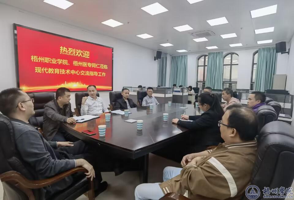 4月3日下午,梧州职业学院质量管理处黄湘寒副处长一行5人以及梧州医学高等专科学校信息中心姜彪主任到我校学习交流。学校现代教育技术中心和电子信息工程学院相关人员参加了交流会。