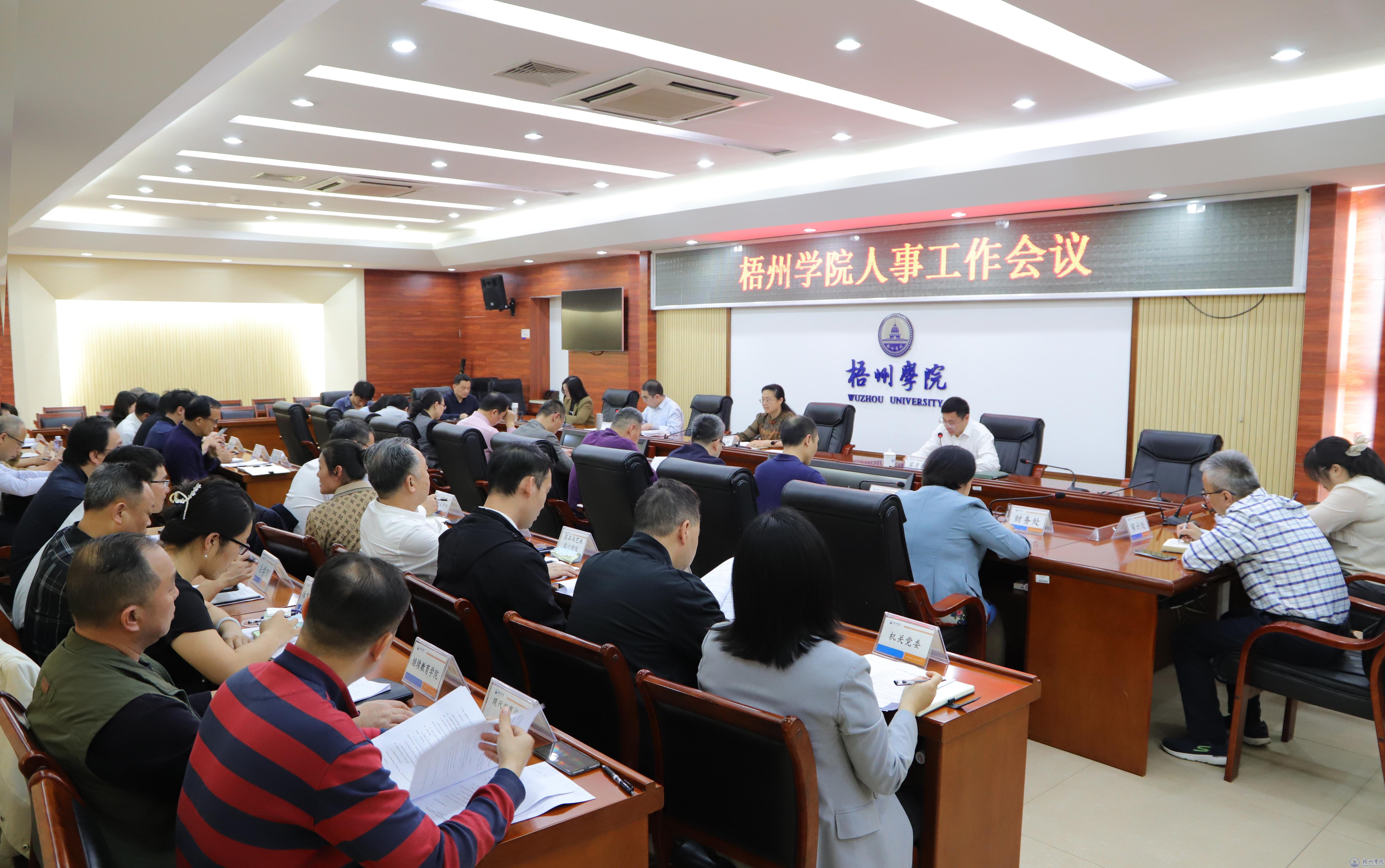 4月4日下午,学校在明理楼八楼第一会议室召开人事工作会议,学校党委书记韦仕珍、副校长宾月景出席会议,学校各单位各部门负责人参加会议。会议由学校副校长宾月景主持。