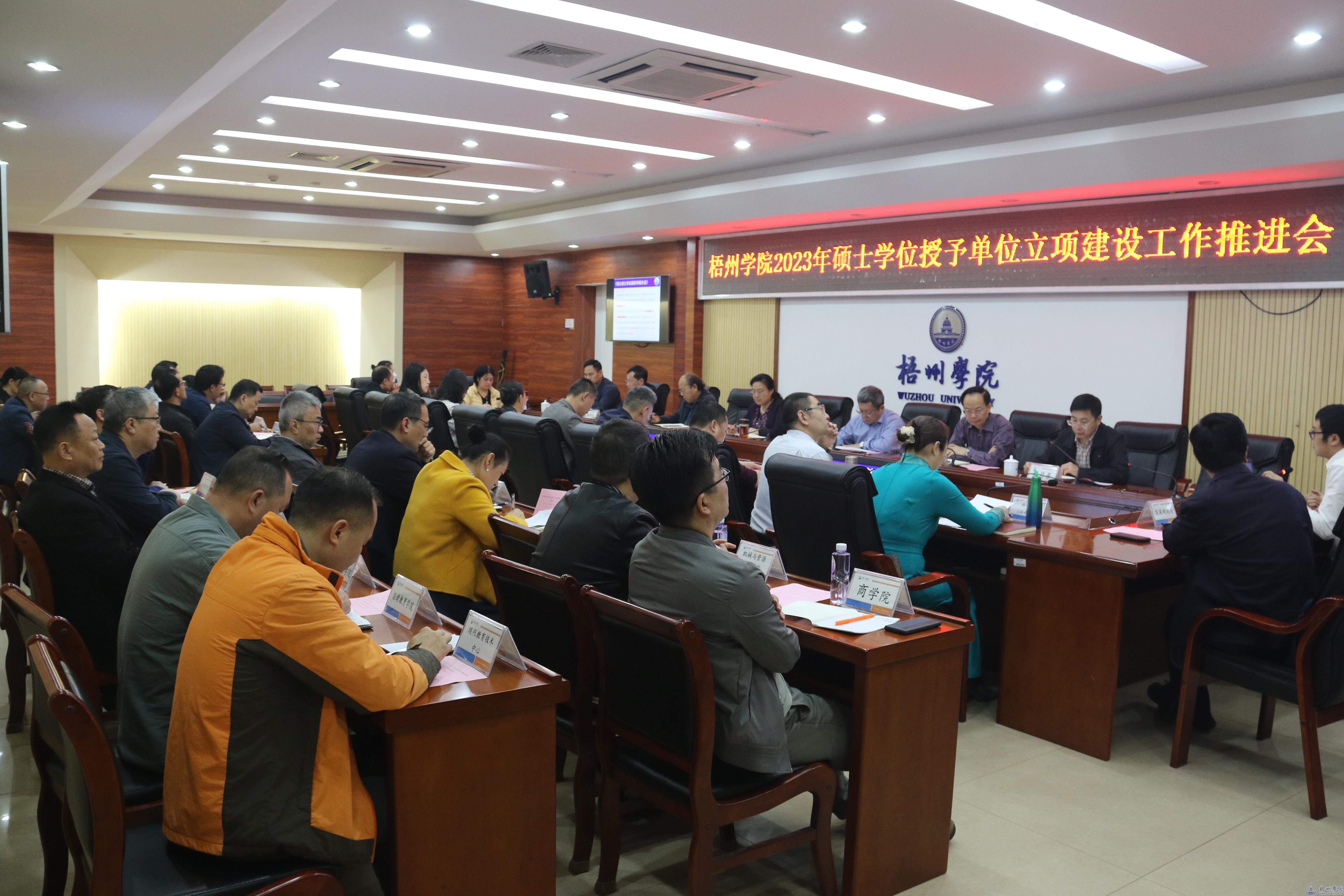 4月6日上午,我校在明理楼八楼第一会议室召开2023年硕士学位授予单位立项建设工作推进会,传达学习上级关于新增硕士学位授予单位建设的文件精神,总结分析当前学科建设和申硕建设中存在的问题短板,并就下一步工作进行谋划部署。学校领导韦仕珍、杨奔、玉振明、梁业华、麻新纯、宾月景、范生汝出席会议,各职能部门主要负责人、各二级学院院长(主持工作副院长)以及发展规划处相关人员等参加会议,会议由宾月景主持。
