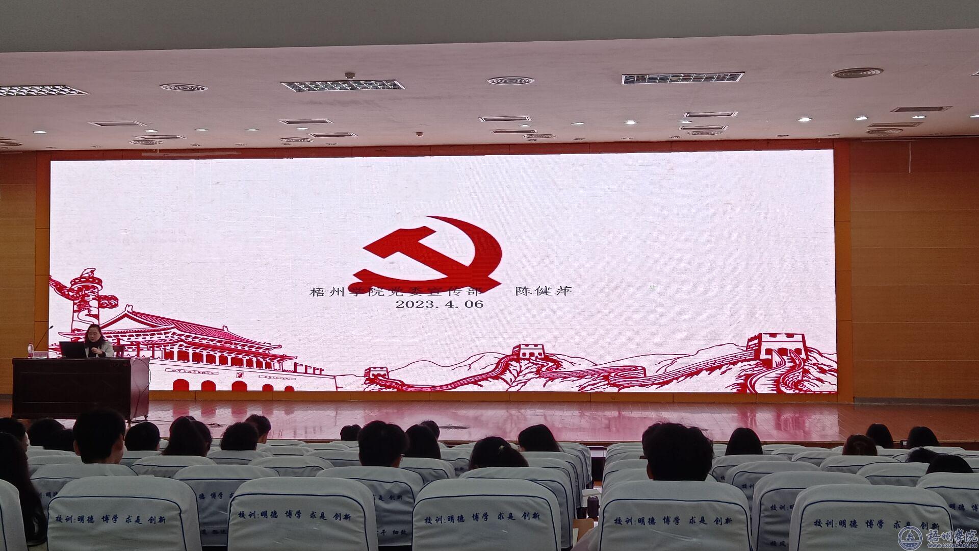 本次专题讲座是梧州学院2023年团干部培训班、第六期“青马工程”训练营的理论学习课程之一,在帮助同学们在深入学习宣传党的二十大精神同时,引导广大青年进一步深刻认识意识形态工作的重要性。