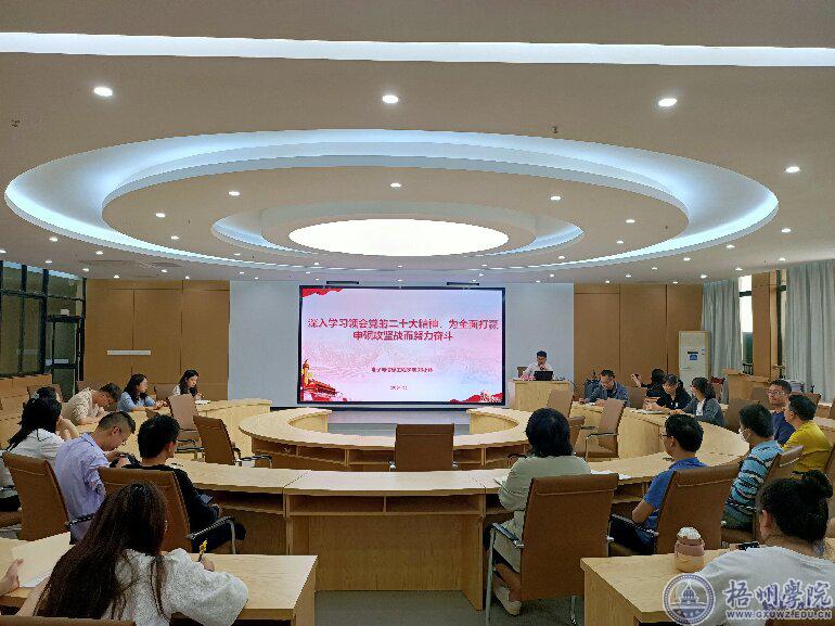 课上,邓小林指出,党的二十大报告全面总结了过去五年的工作,系统回顾过去十年伟大变革,科学展望未来征程,进一步指明了党和国家事业的前进方向,内涵丰富、催人奋进。学院全体党员一定要把学习贯彻党的二十大精神作为当前和今后一个时期重要政治任务,以习近平新时代中国特色社会主义思想为指导,把贯彻落实党的二十大精神聚焦到我们现阶段最重要的“申硕攻坚”中心任务上,立足本职,创新发展,同心逐梦,砥砺奋进,以强烈的责任担当、昂扬的精神状态为打赢申硕攻坚战而努力奋斗。