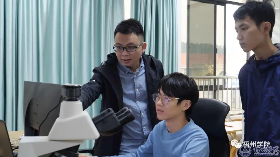 庞光垚博士在指导学生(左一)