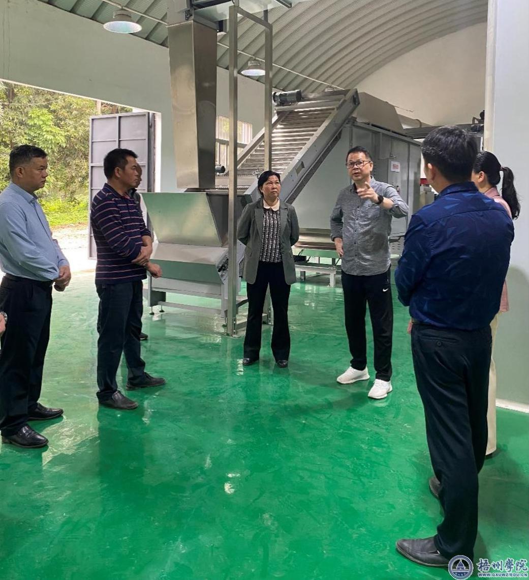 4月12日上午,梧州市农机中心副主任郑振菊和梧州市摩天茶海旅游发展有限公司董事长黄光率队参观我校位于旦冲的六堡茶智能化加工生产基地,机械与资源工程学院钟山院长热情接待了郑振菊、黄光一行。