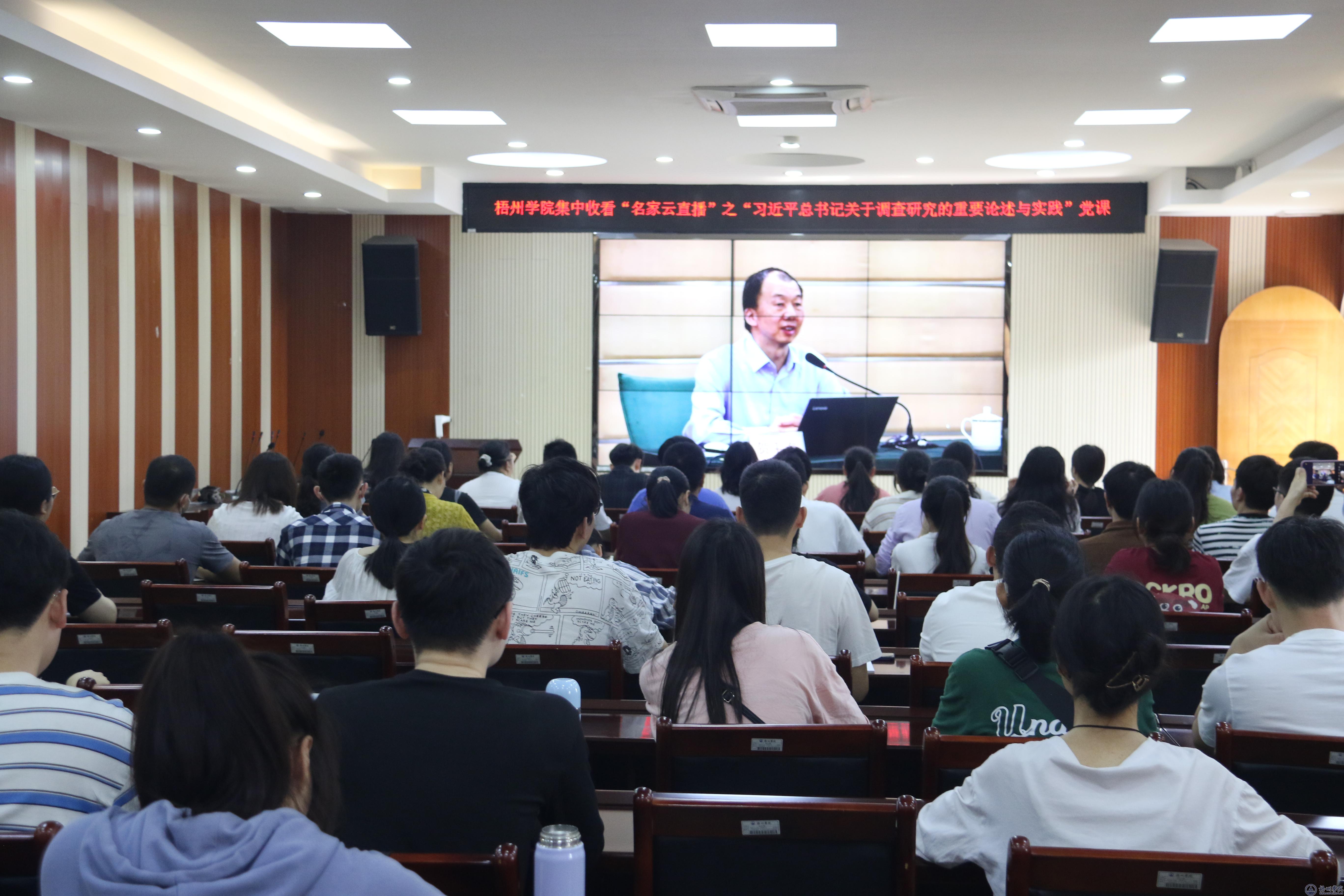 4月17日上午,学校组织师生党员代表在明理楼七楼视频会议室集中观看“名家云直播”之“习近平总书记关于调查研究的重要论述与实践”党课。
