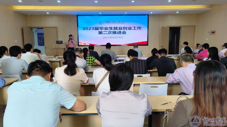 4月19日下午,大数据与软件工程学院召开2023届毕业生就业创业工作第二次推进会,学院全体教师参加会议,学院党委副书记韦翠兰主持会议。