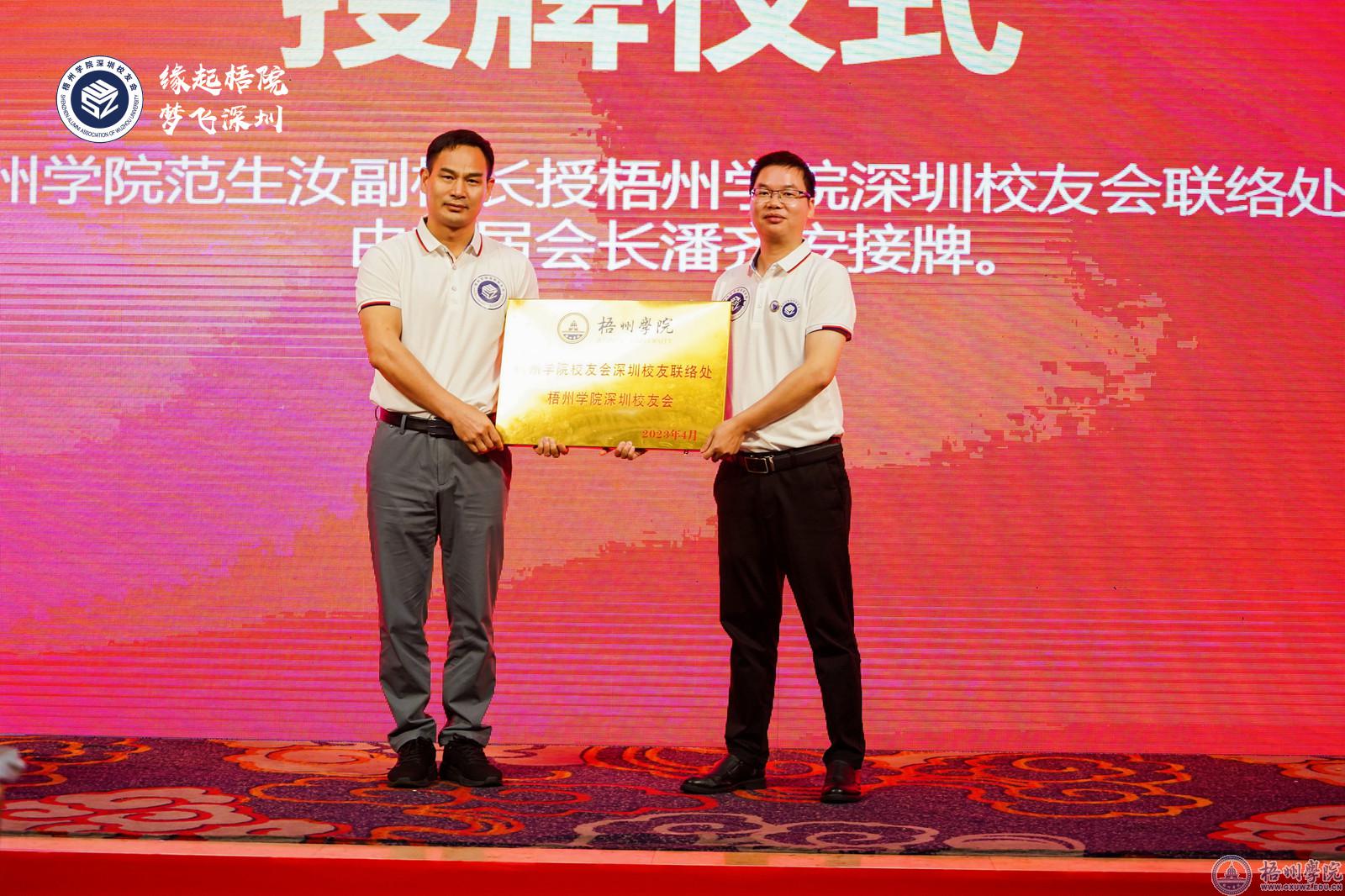 范生汝副校长为深圳校友会联络处颁发牌匾