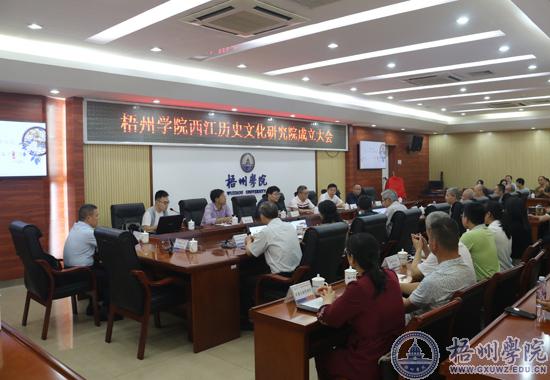 4月20日下午,梧州学院在明理楼八楼第一会议室举行西江历史文化研究院成立大会。学校校长杨奔、副校长宾月景出席大会。来自梧州市社科联、梧州市政协、梧州市博物馆、梧州市地方志编纂委员会办公室等区内外22家单位的38名专家学者雅集一堂,共同见证梧州学院西江历史文化研究院成立。大会由学校西江流域民间文献研究中心常务副主任陈宇思博士主持。