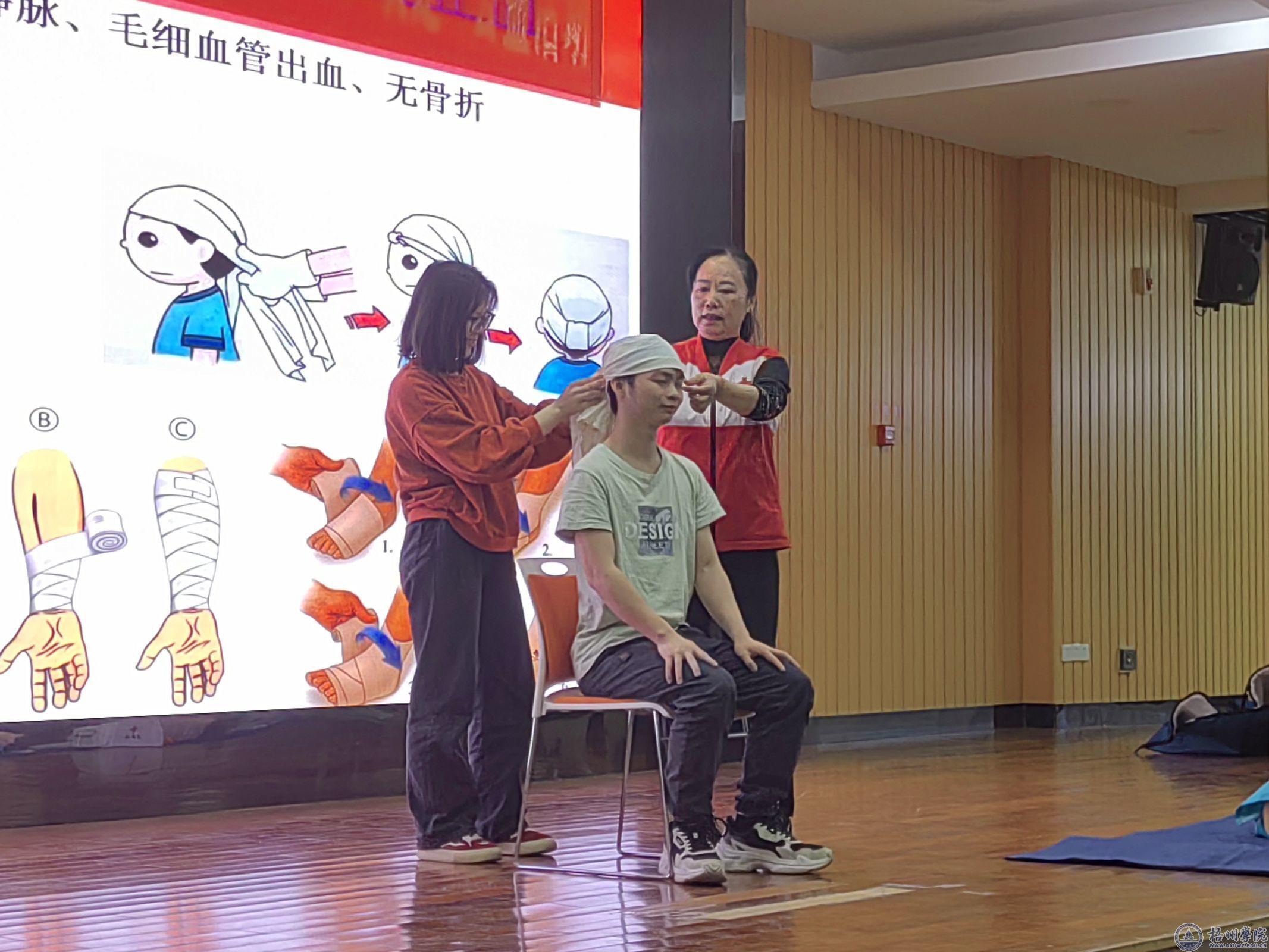 随后,进行应急救护知识培训。广西梧州红十字会培训师团围绕“心肺复苏、气道异物梗阻、预防踩踏、创伤救护”等内容对应急救护知识和技能进行细致全面地讲授。学员们边听、边记、边互动,全场互动氛围活跃。