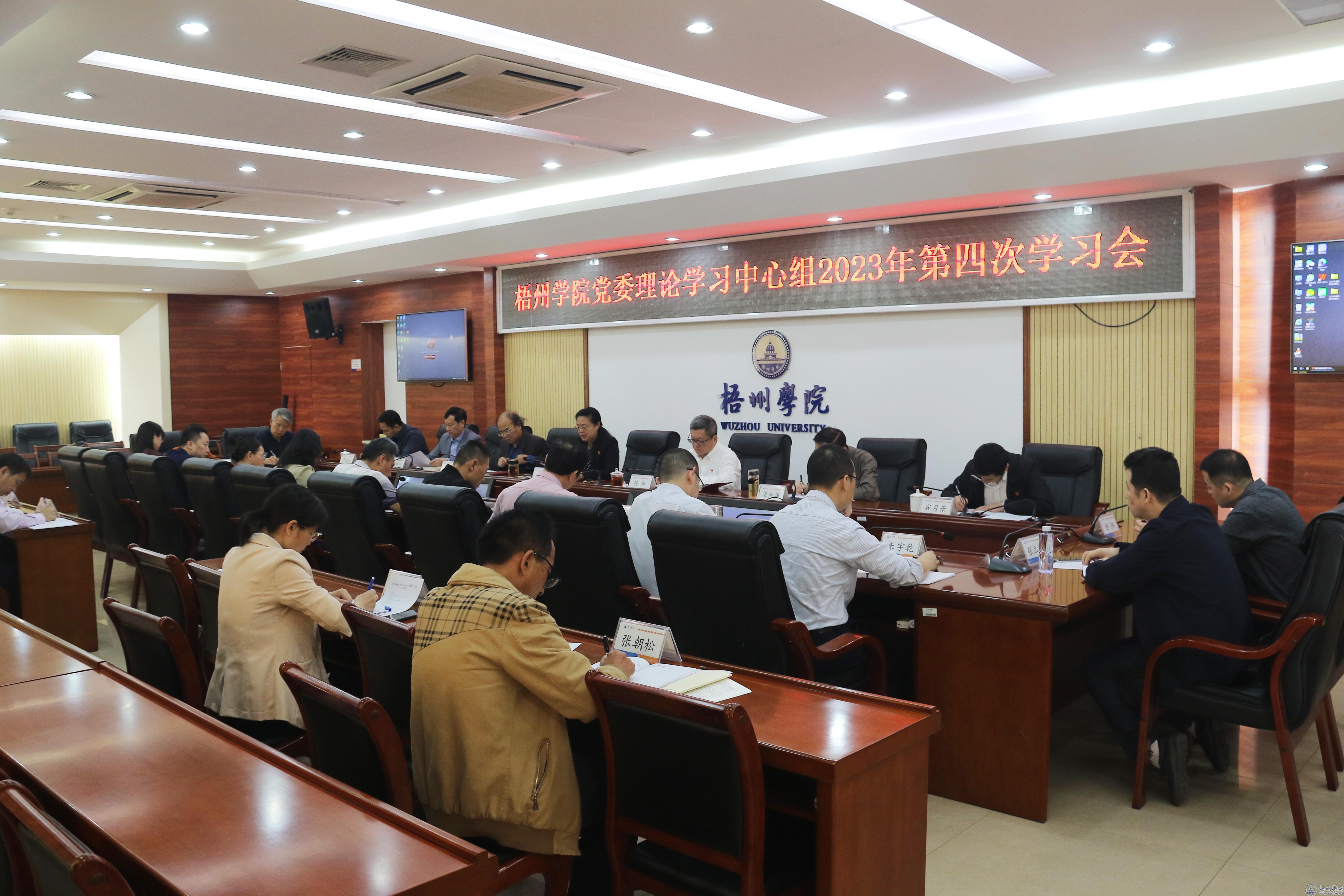 覃雄彪同志就学习贯彻习近平总书记在中央政治局第四次集体学习时的重要讲话精神作中心发言。他认为,要深刻领悟习近平总书记的讲话精神,领导干部要在主题教育中当表率、以身作则、以上率下,同时要抓好调查研究,深入实际、深入群众,带头抓好问题建设和整改。李德华同志就深入开展主题教育着力推进学生工作高质量发展作中心发言。他认为,要认真统筹谋划、精心组织学习,用党的创新理论统一思想、统一意志、统一行动,努力把学习成果转化为坚定理想、锤炼党性和指导实践、推动工作的强大力量,推动学生工作高质量发展。甘阳同志就以学促干,奋进新征程,建功新时代作中心发言。他认为,要全面学习领会习近平新时代中国特色社会主义思想的科学体系和精髓要义,坚持为党育人、为国育才,落实立德树人的根本任务,全面推进五育并举工作,努力营造梧院校园体育文化特色氛围。