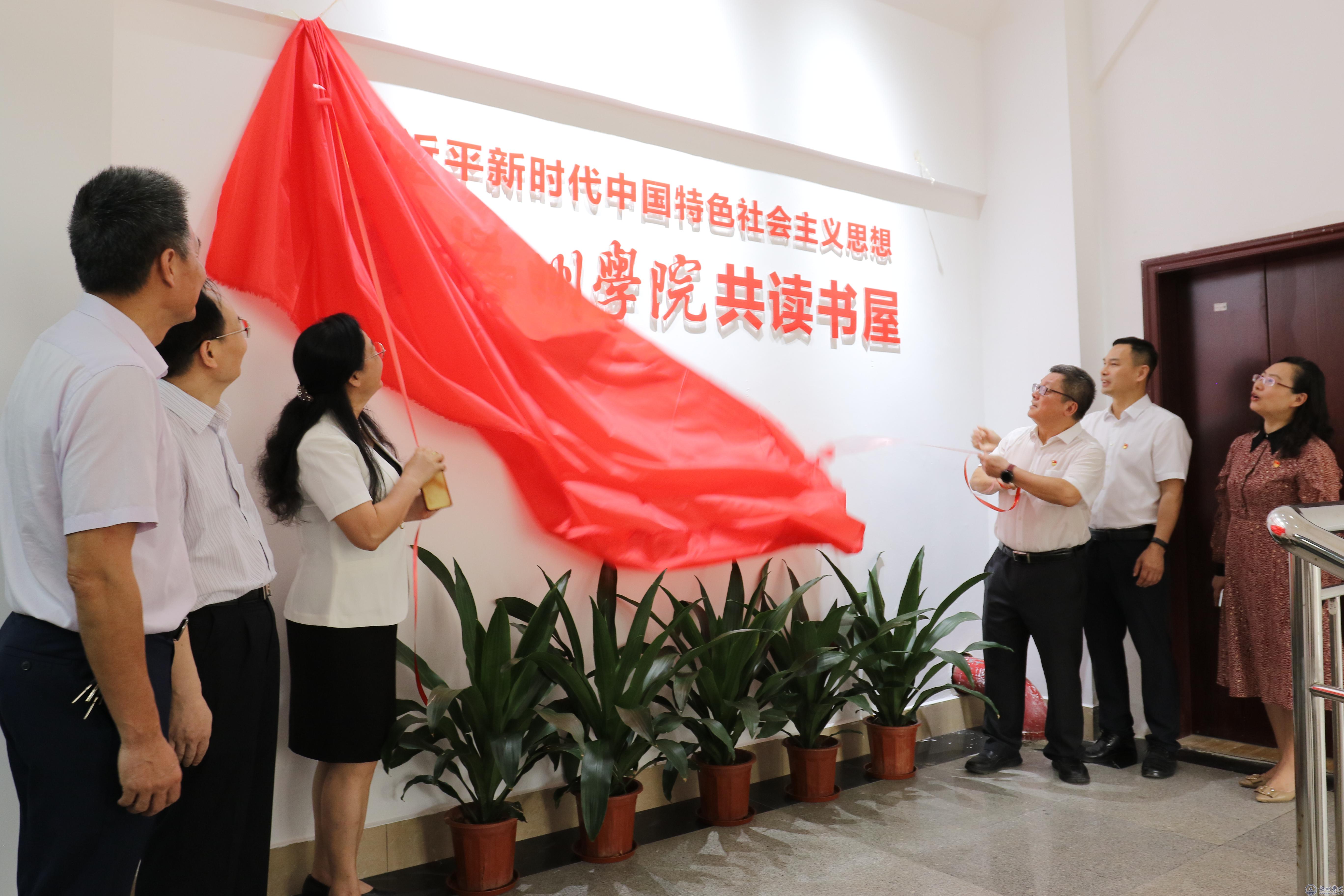 韦仕珍书记、杨奔校长一同为共读书屋揭牌。揭牌仪式结束后,校领导与大家一同参观了共读书屋,在党委宣传部负责人的介绍下,详细了解了共读书屋的建设初衷和历程、各个功能区的建设情况以及使用规划情况。