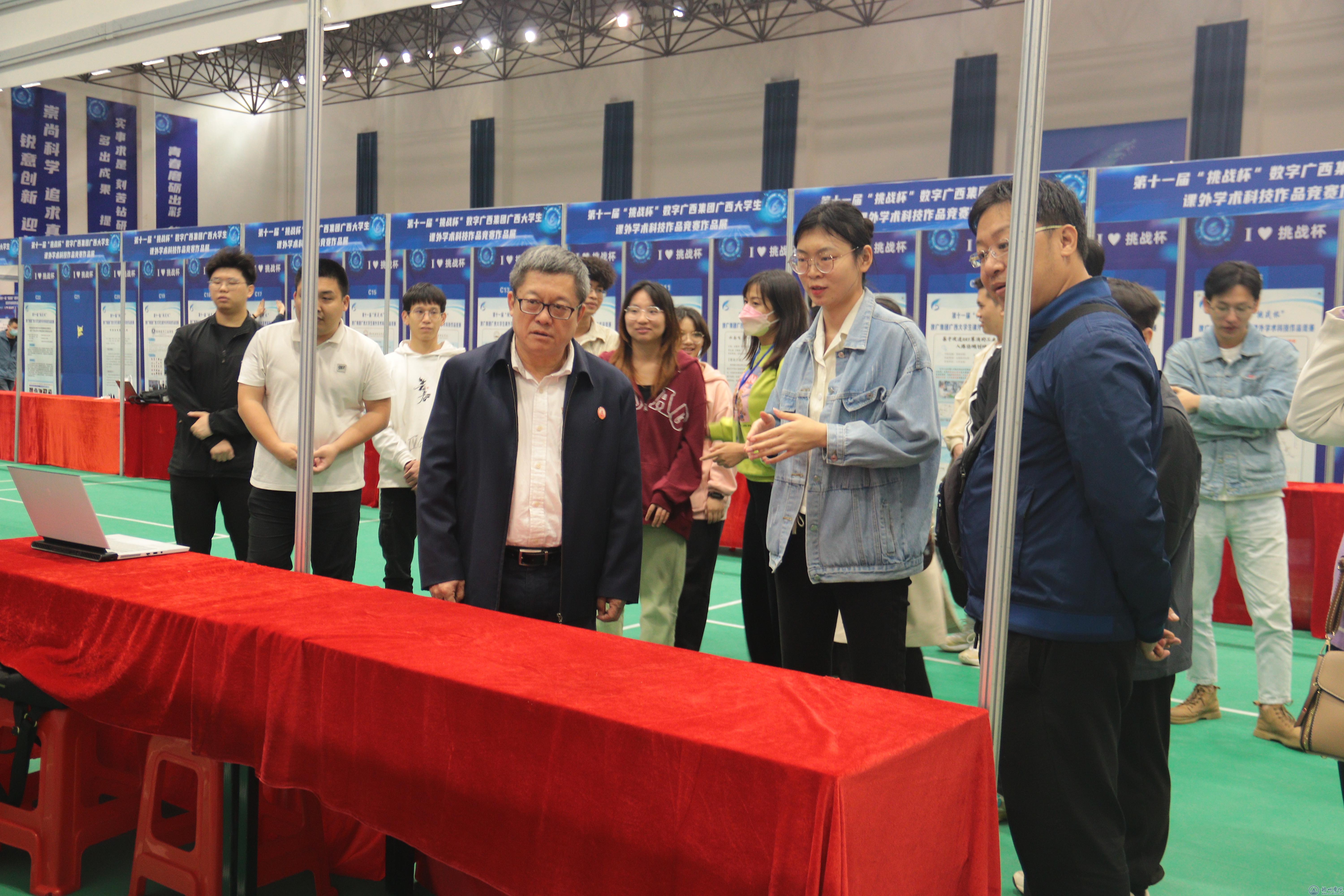 杨奔校长听取了入围终审赛的三个团队成员分别介绍关于项目的研究意义、研究思路与方法、研究进展与已取得的成果等情况。杨奔校长充分肯定了项目的研究成果及意义,他嘱咐在场师生,现在广西终审赛是进入国赛的最后一关,国赛平台高,难度大,是挑战也是机遇,希望参赛选手能够一鼓作气,在接下来的答辩中展现出最佳状态,为我校争得荣誉。同时参赛的同学要根据专家建议将项目积极整合,集中有限资源与精力,继续打磨作品;指导老师也要以最大的力度为参赛同学做好最充分的指导、最细致的配合和最贴心的帮助。参赛团队注意劳逸结合,调整好自身状态,答辩时要自信,展现梧院学子自信、乐观、阳光、友善的青春姿态。