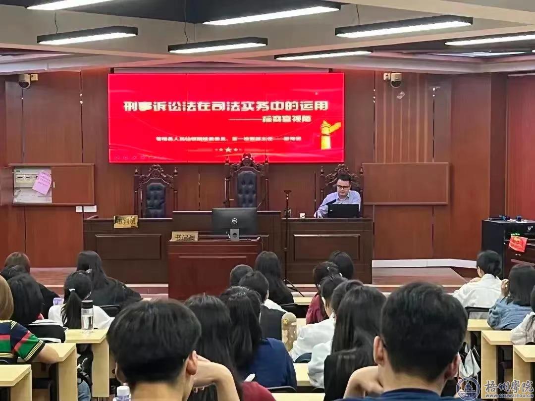 5月10日晚,受梧州学院法学院的邀请,苍梧县人民检察院检察委员会委员、一级检察官、第一检察部主任廖海洲同志应邀做客法学院,给21级法学专业近150名学生作了题为《刑事诉讼法在司法实务中的运用——检察官视角》的讲座。