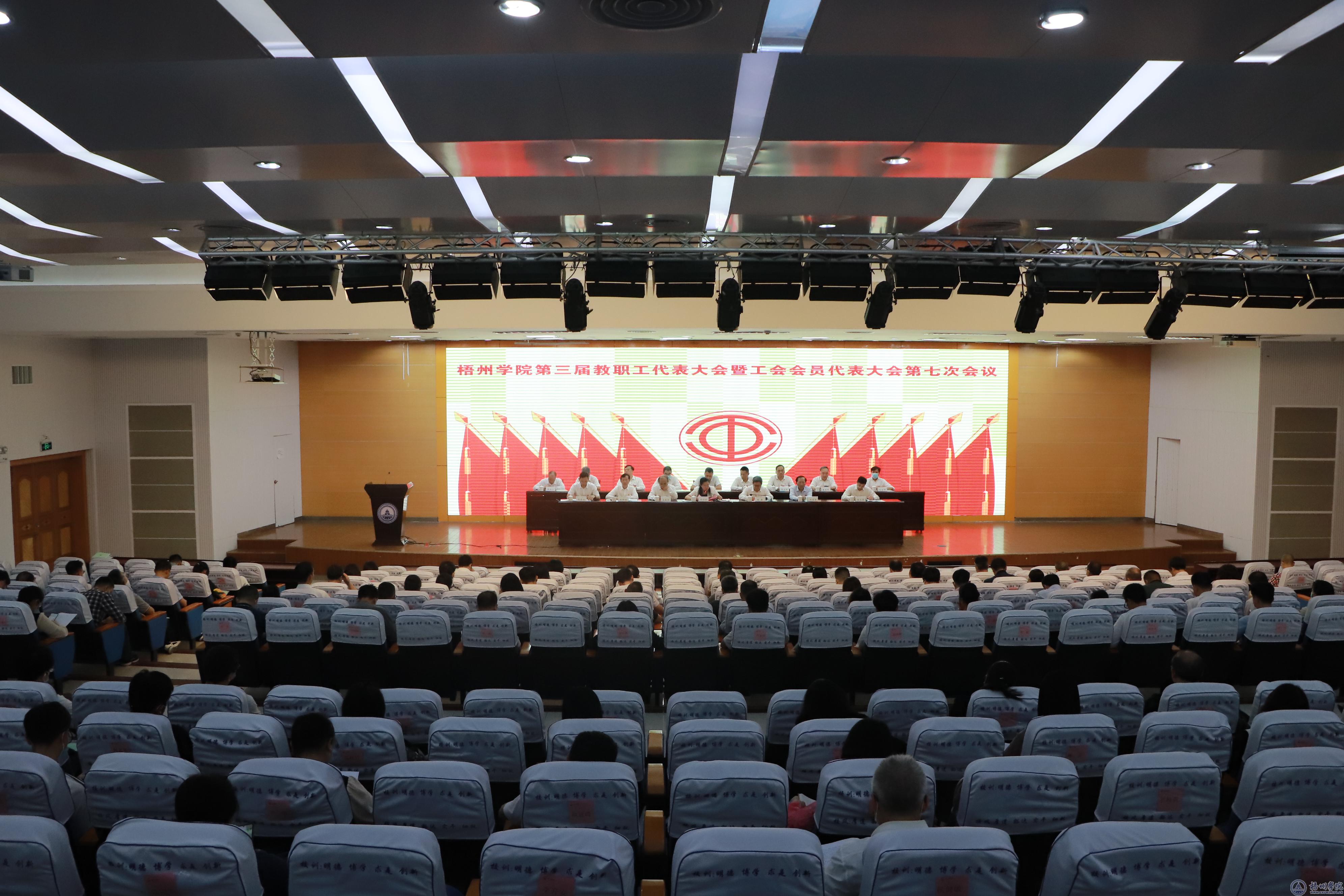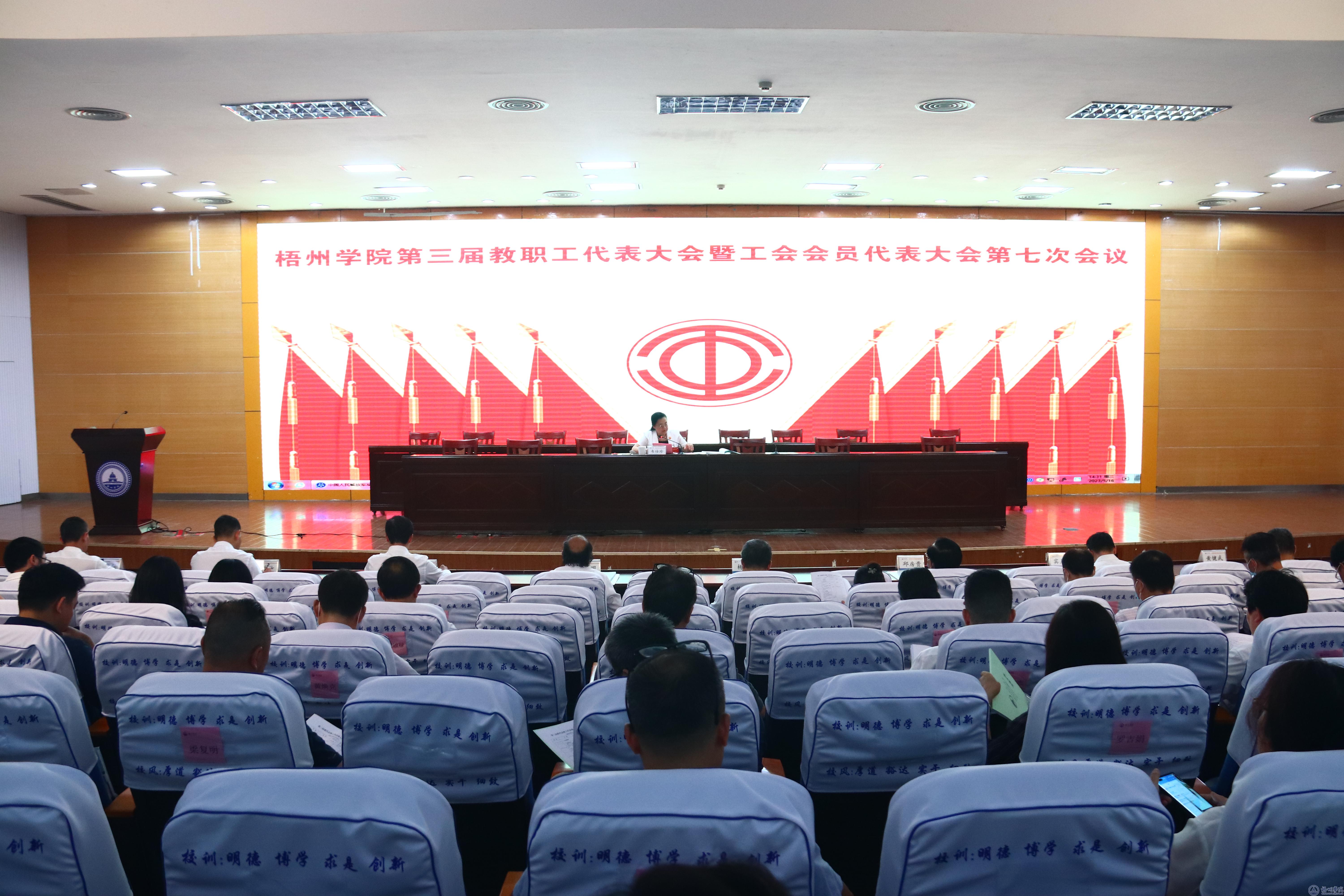 5月16日下午,在明理楼学术报告厅,学校学校召开第三届教职工代表大会暨工会会员代表大会第七次会议,学校领导韦仕珍、杨奔、玉振明、邱房贵、麻新纯、宾月景、范生汝出席会议,本次大会应到代表171人,实到代表136人,符合法定人数。