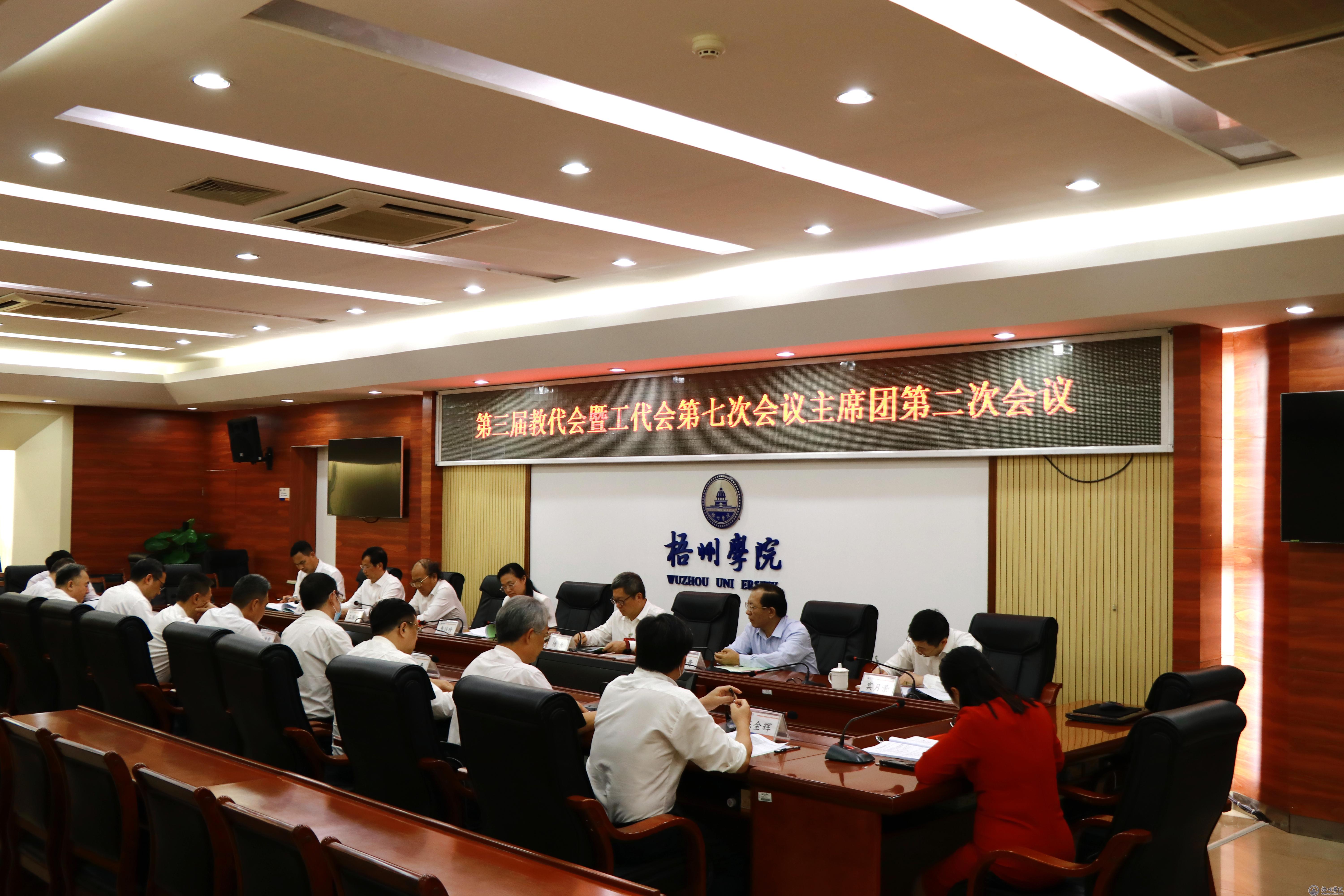 下午4点35分,学校在明理楼8楼第一会议室召开大会主席团第二次会议。各代表团分别汇报了本团代表的意见和建议。会议还表决通过了《梧州学院2022年度财务决算和2023年度预算报告》《梧州学院工会2022年度工作报告》《梧州学院2022年度工会经费审查报告》《第三届教代会第五次会议提案处理情况报告和第七次会议提案征集情况说明》。