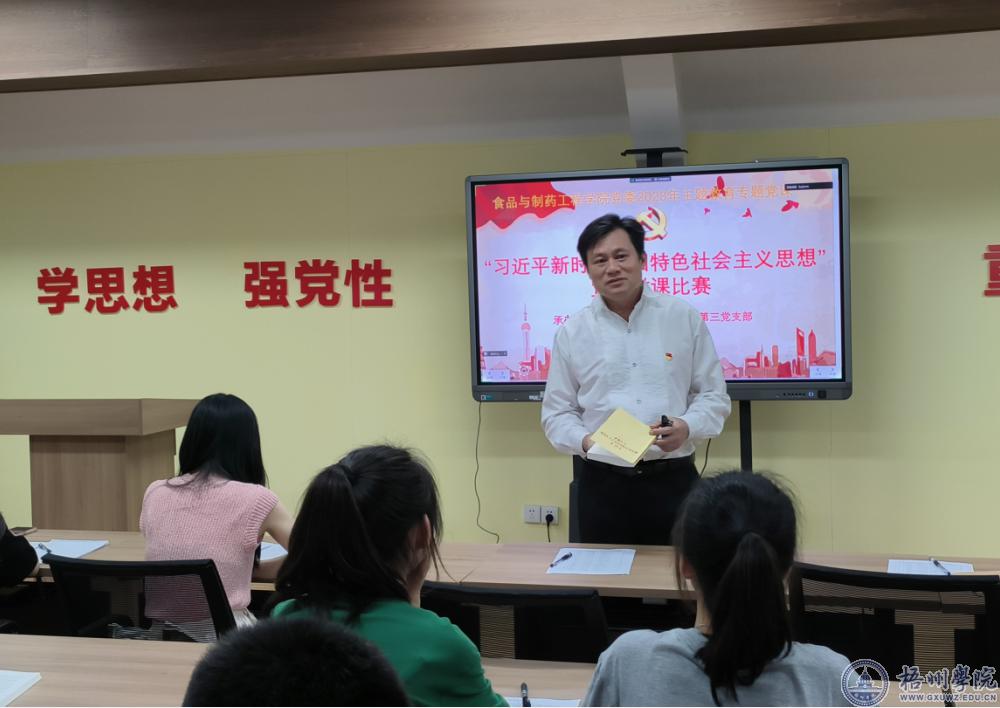 为持续深入开展学习贯彻习近平新时代中国特色社会主义思想主题教育,5月16日下午,在明理楼10楼共读书屋,食品与制药工程学院党委举办“习近平新时代中国特色社会主义思想”宣讲微课比赛。
