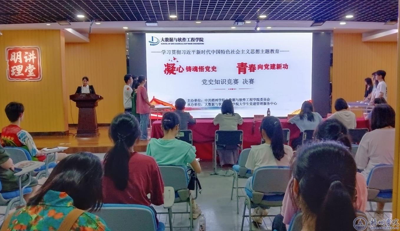 为进一步深入开展学习贯彻习近平新时代中国特色社会主义思想主题教育,学习贯彻落实党的二十大精神, 5月16日晚,大数据与软件工程学院党委在明理讲堂举办“凝心铸魂悟党史 青春向党建新功”党史知识竞赛决赛。学院党委副书记韦翠兰、各党支部书记参加活动。
