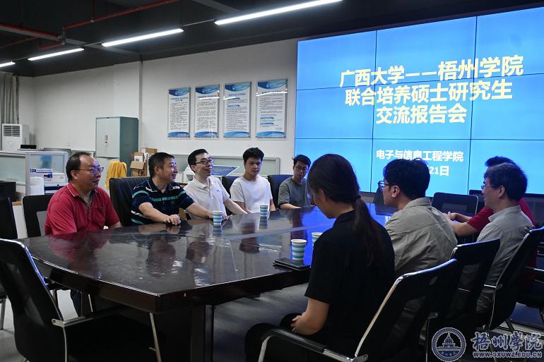 会上,联合培养的硕士研究生对中期工作进行了汇报,电子与信息工程学院的硕士生导师分别汇报了各自研究领域和所带研究生的工作进展。张学军教授对电子与信息工程学院研究生培养的条件和学生的指导工作给与了充分肯定并提出了相应的建议,介绍了在研究生培养期间的各个时间节点所要做的工作及毕业要求。双方并就对下一步广西大学与梧州学院合作申报相关科研项目,进行了实质性的探讨。