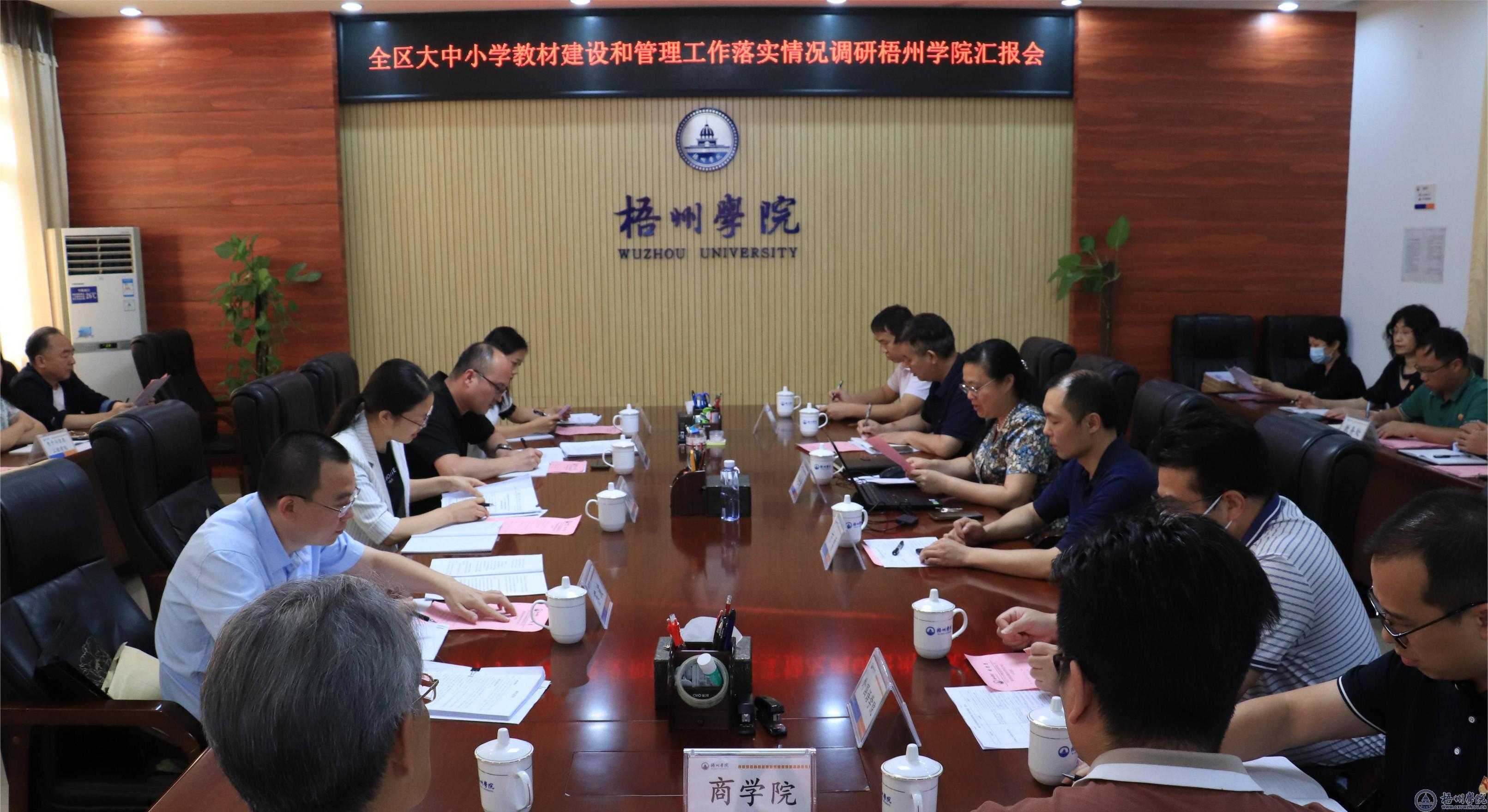 5月23日,自治区教材委员会办公室专项工作组广西民族教育发展中心(广西课程教材发展中心)主任商秀梅一行4人到我校开展全区大中小学教材建设和管理工作落实情况调研活动。专题汇报会在明理楼第二会议室召开,会议由学校党委书记韦仕珍主持。教务处全体领导、各二级学院书记、院长、教材科负责人参加会议。
