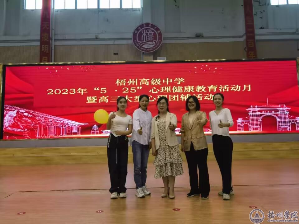 5月19日下午,我校组织心理健康咨询中心专兼职老师到梧州高级中学,为1100多名高三学生开展主题为“与压力共舞,与未来相约”的团体心理辅导活动。梧州高级中学党委书记廖宇、校长谭远森,高三年级服务团队全体成员以及班主任参与活动。