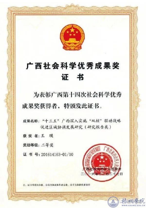 王瑛等荣获广西第十六次社会科学优秀成果奖