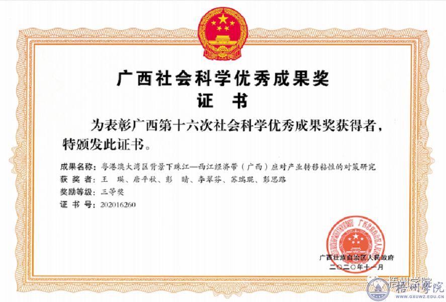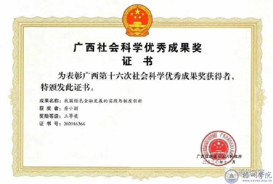 詹小颖荣获广西第十六次社会科学优秀成果奖