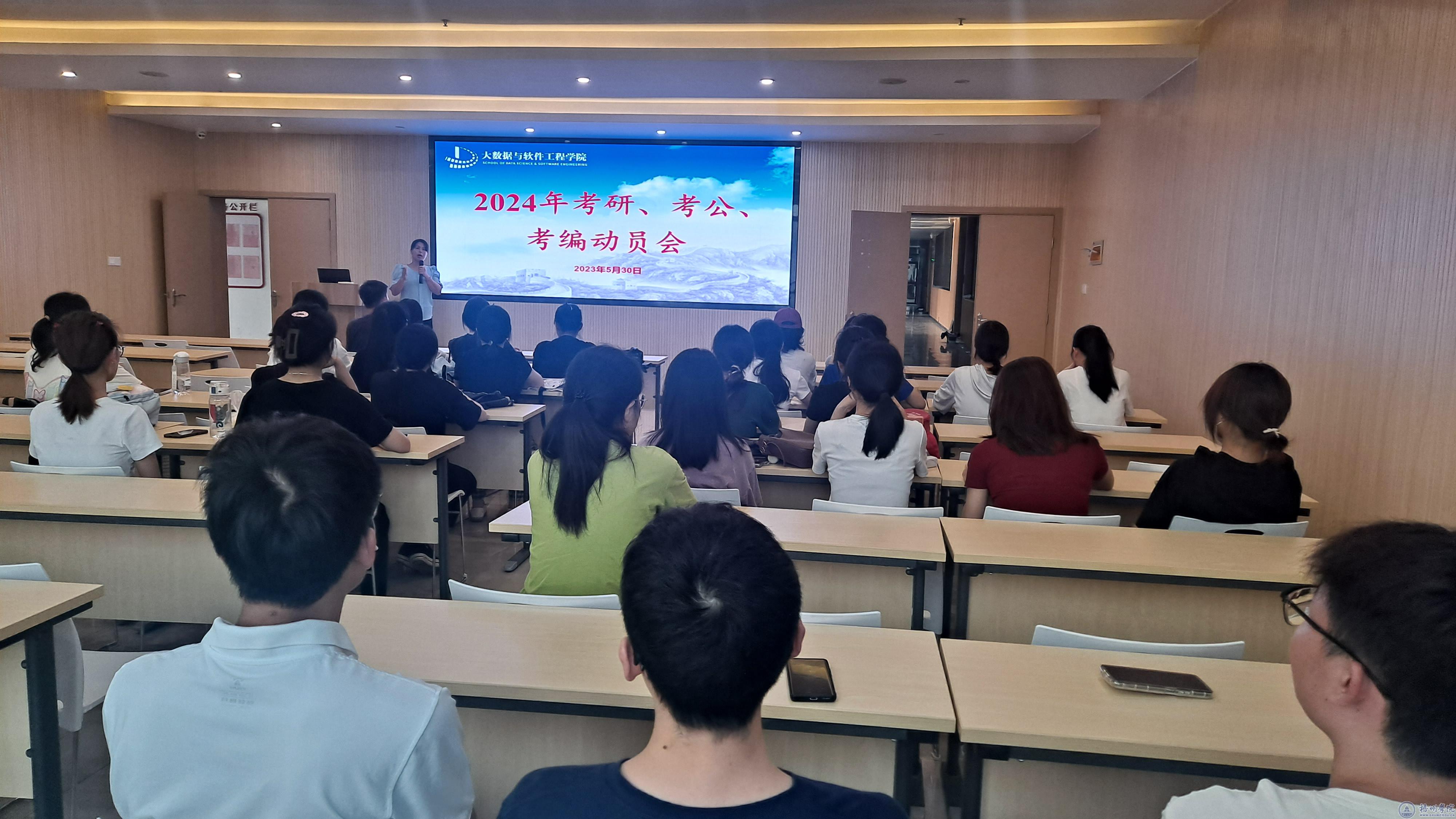 为调动学生的考研积极性,增强考研信心,大数据与软件工程学院于5月30日在科技楼K902会议室召开考研动员会。学院党委副书记韦翠兰、辅导员代表以及2020级有意向考研的同学参加了动员会。