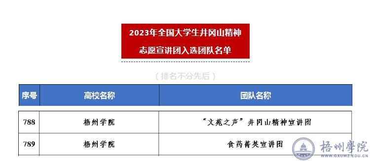 近日,团中央青年志愿者行动指导中心、全国青少年井冈山革命传统教育基地、井冈山管理局联合发布了《关于遴选2023年全国大学生井冈山精神志愿宣讲团的公告》。我校“文苑之声”井冈山宣讲团、食药菁英宣讲团成功入选井冈山精神志愿宣讲计划!