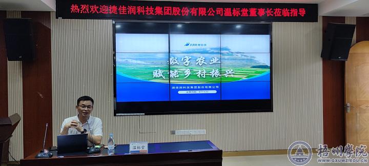 会上,商学院杨诚院长进行致辞。温标堂董事长以“数字农业赋能乡村振兴”为题,介绍了捷佳润科技集团股份有限公司的诞生、发展和取得的成绩。用详细的案例来展示数字农业云平台及数字农业解决方案、高标准农田解决方案和全程植物营养定制。展现了人工智能引导下的农业高科技发展。