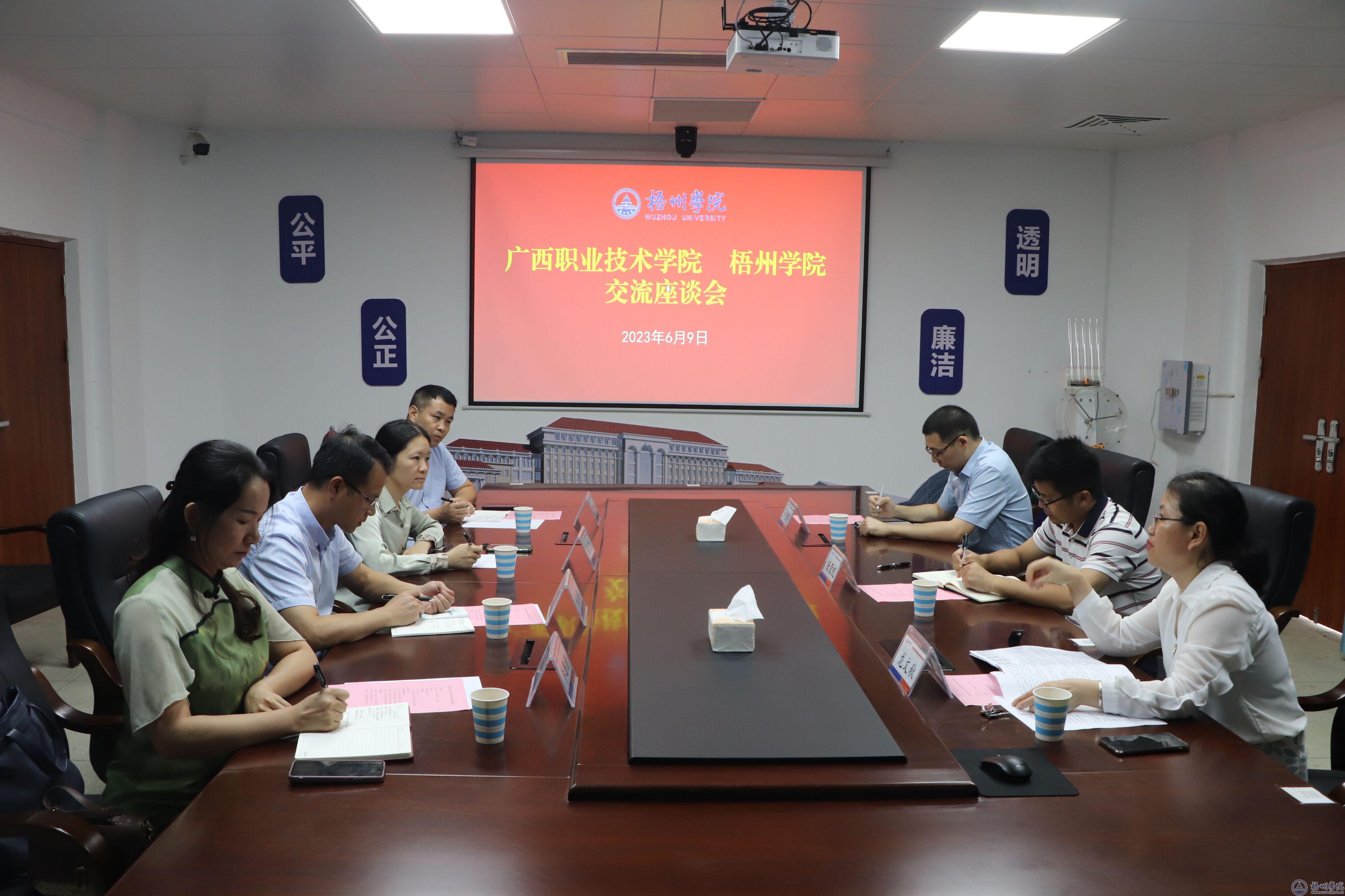 6月9日,广西职业技术学院党委办公室(学院办公室)主任周治一行4人来到我校进行调研交流项目管理方面的工作经验,我校党委(校长)办公室、国有资产管理处等部门代表在政楼四楼开标室热情接待了周治主任一行。