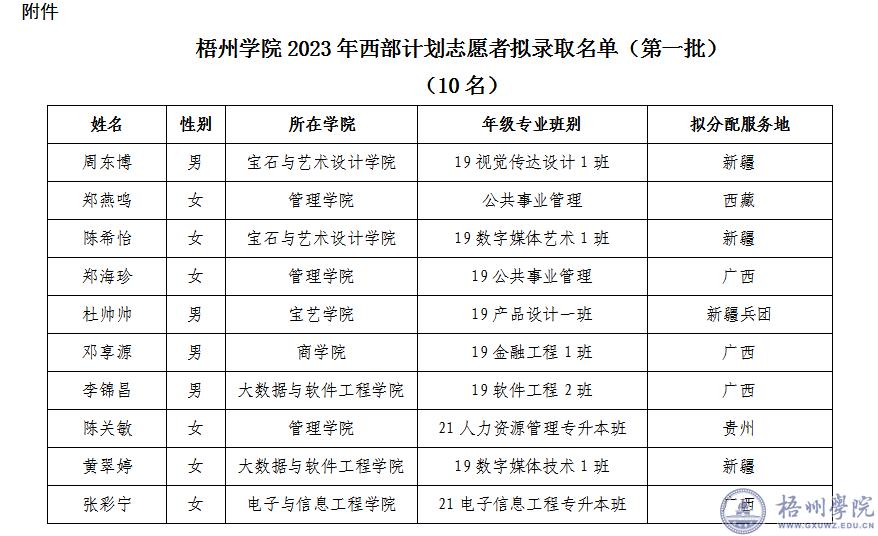 附件:梧州学院2023年西部计划志愿者拟录取名单(第一批)