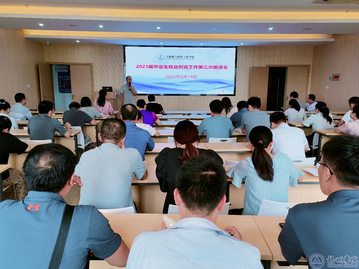 6月14日下午,大数据与软件工程学院召开2023届毕业生就业创业工作第三次推进会,学院全体教师参加会议,学院党委副书记韦翠兰主持会议。