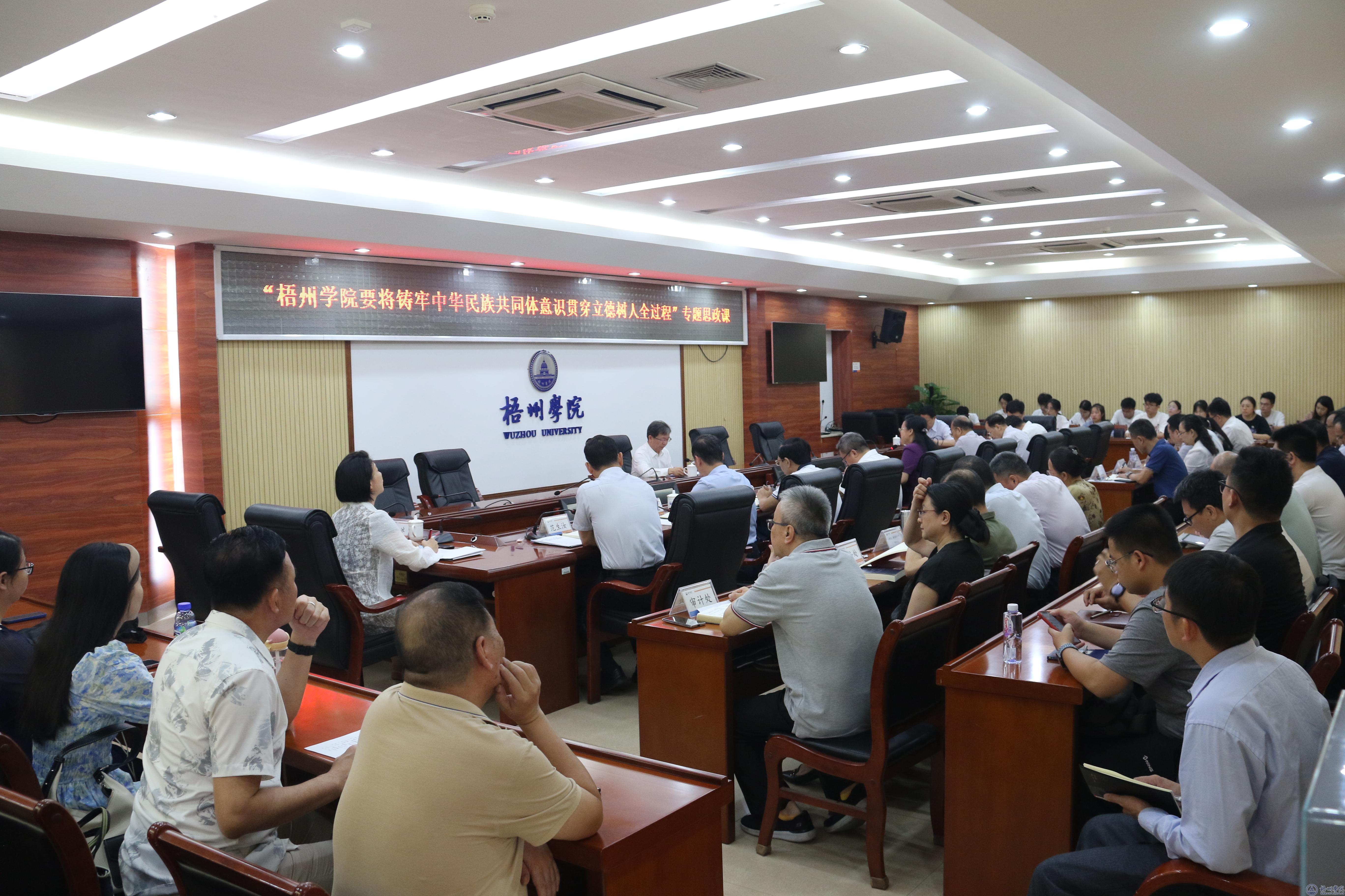 为有力推动学习贯彻习近平新时代中国特色社会主义思想主题教育走深走实,深入学习贯彻党的二十大精神,全面落实习近平总书记关于加强和改进民族工作的重要思想,6月16日上午,自治区人大副主任卢献匾以《梧州学院要将铸牢中华民族共同体意识贯穿立德树人全过程》为题,为我校师生作民族共同体意识专题思政课。