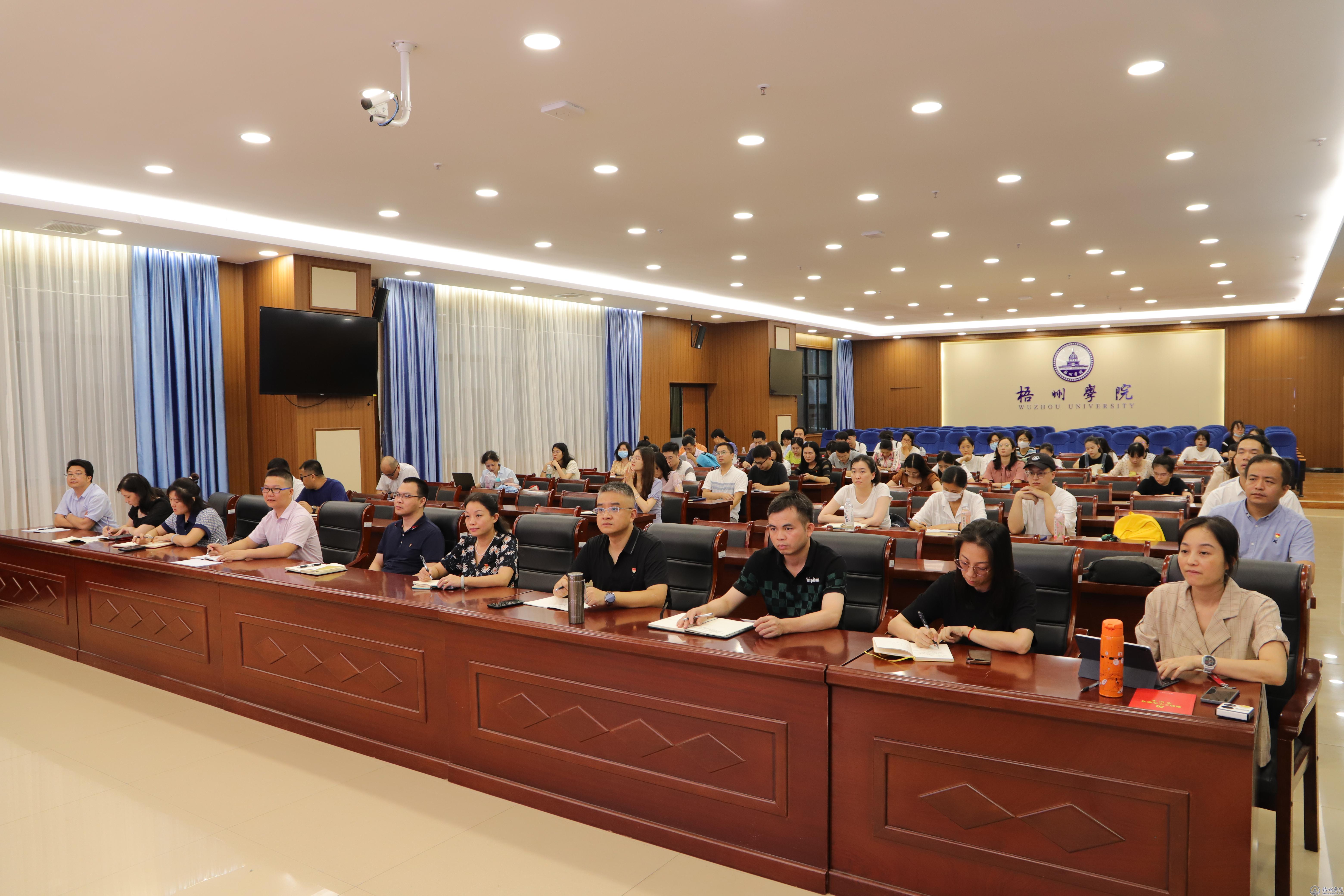 为深入学习贯彻习近平新时代中国特色社会主义思想,筑牢思想根基,强化理论武装,6月17日下午,学校在明科楼报告厅举办“学思想 强党性 争做高等院校立德树人先锋践行者”专题党课。藤县县委常委、组织部部长杨战强应邀讲授专题党课。学校党委基层党务干部能力提升培训班和“知信行”青年干部主题教育研学班全体学员参加党课学习。