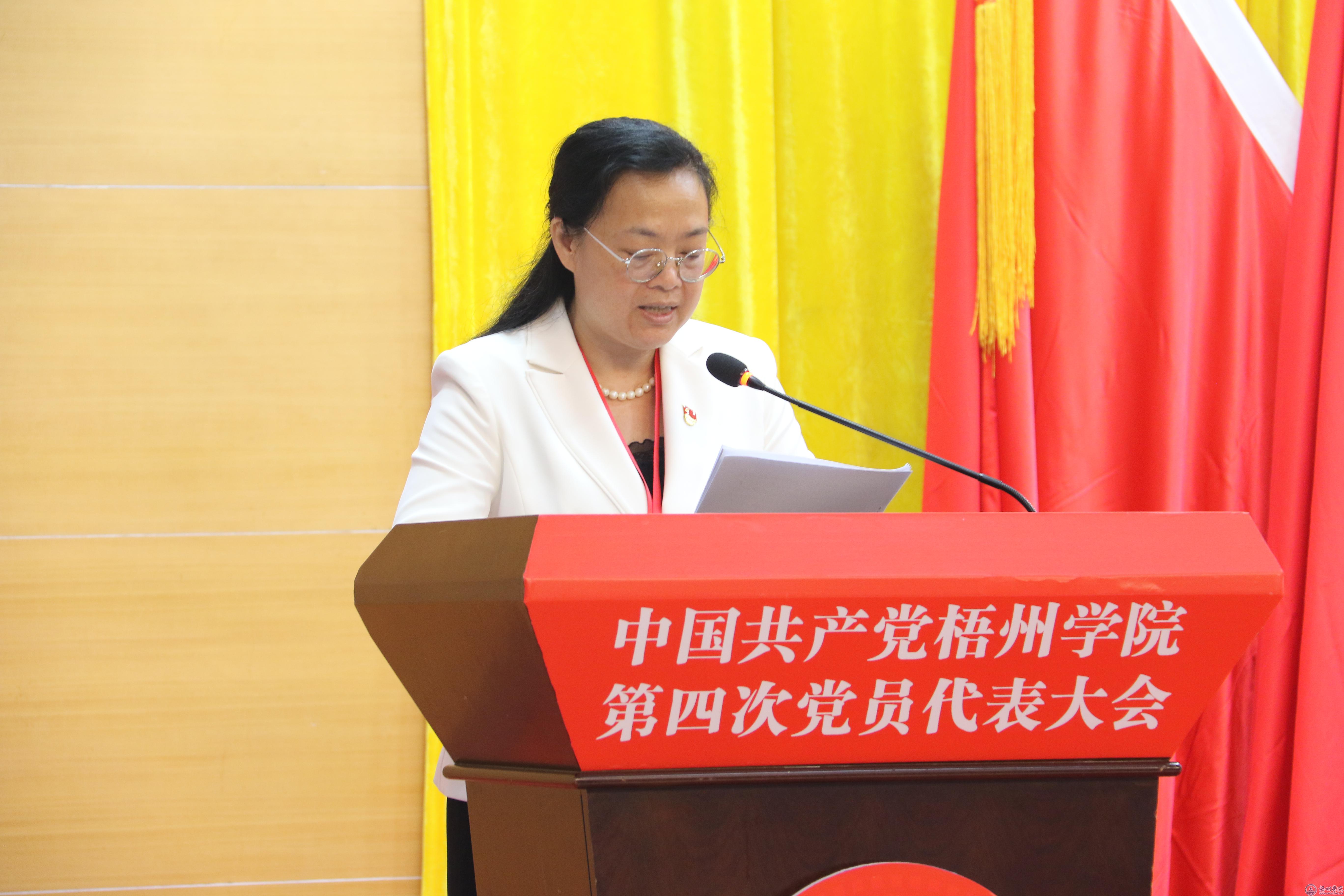 韦仕珍代表中国共产党梧州学院第三届委员会向大会作的工作报告共分为四个部分:一是第三次党代会以来的工作回顾;二是总体思路和奋斗目标;三是未来五年的重点工作;四是奋力开创党的建设新局面。