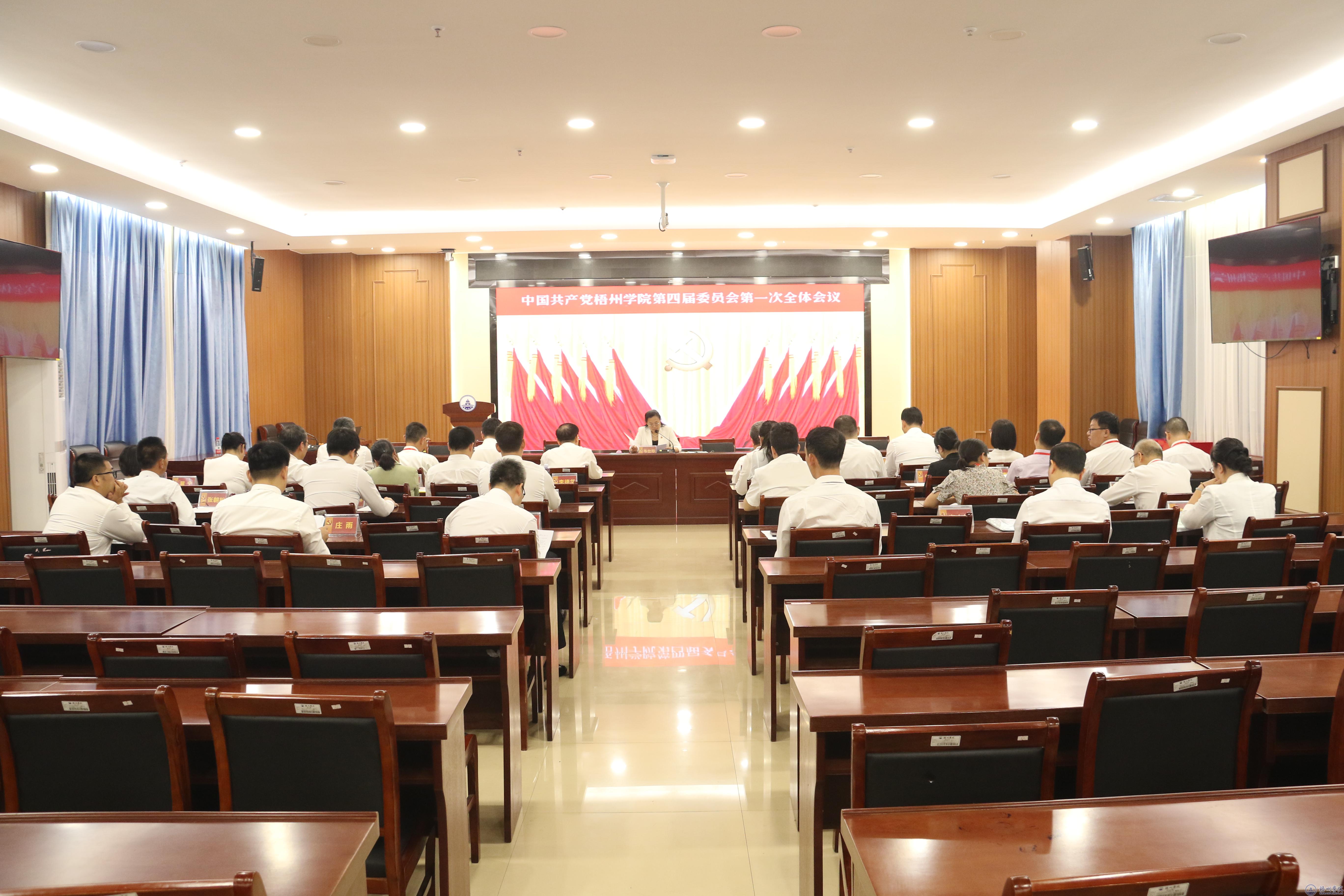 6月30日下午,中国共产党梧州学院第四届委员会在明科楼一楼会议室召开第一次全体会议。本次全会应到会委员27名,实到会委员27名。会议由韦仕珍同志主持。