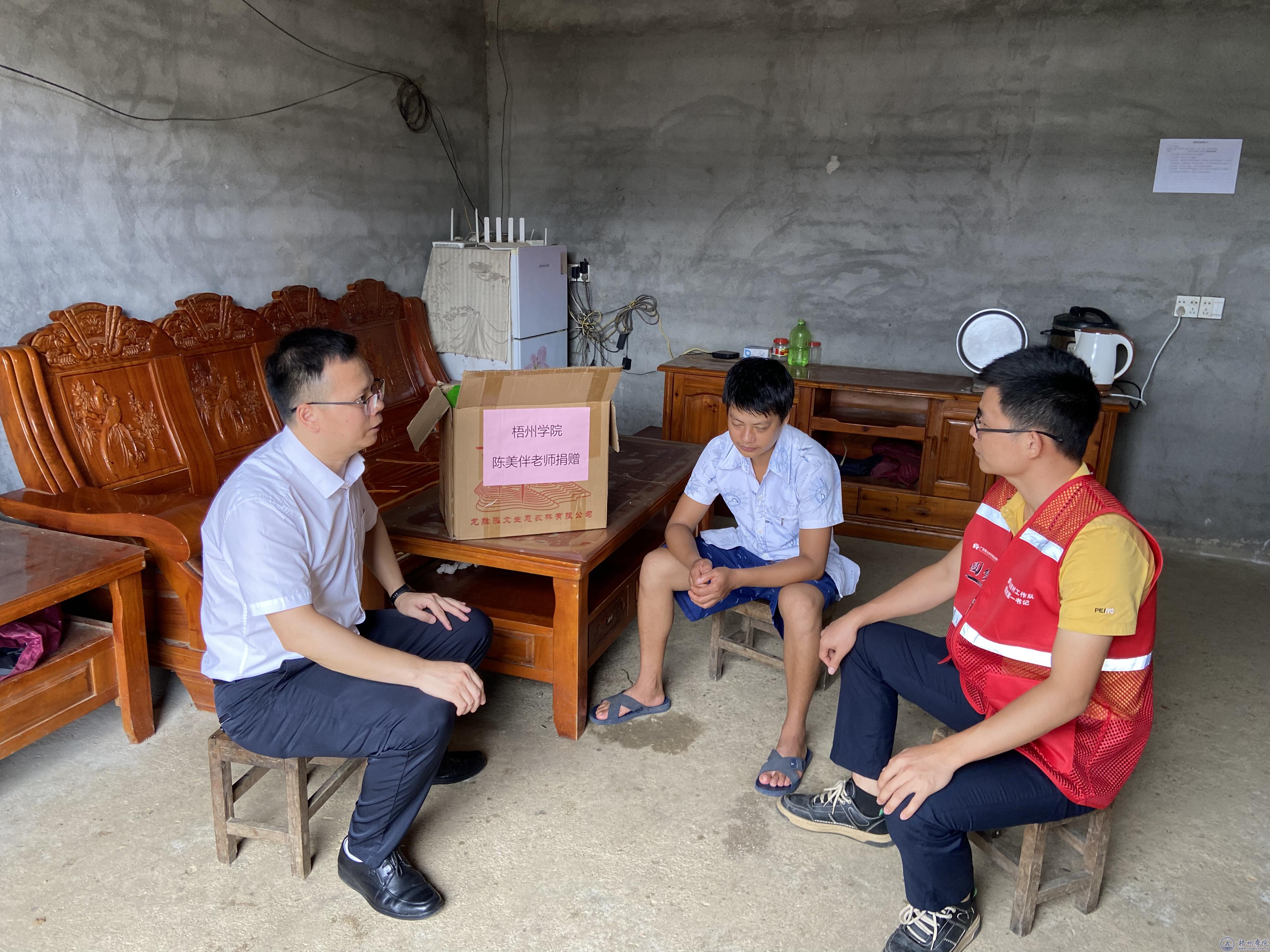 慰问期间,李泽庆向李永成转交了由食药学院陈美伴老师捐赠的米油等慰问品。此外,学院为李永成购买鸡苗发展养殖业进行了捐款。
