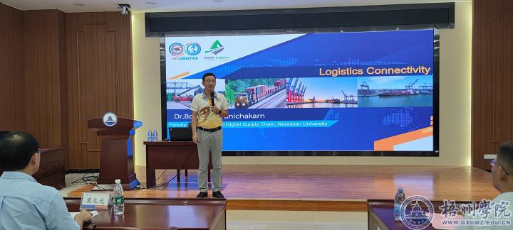 讲座中,Boonsub Panichakarn博士就物流与供应链之间的关系进行了细分,从而引出物流链接的概念以及详述其对今后物流发展的作用,并对新型的数字化供应链,数字化物流,数字化供应体系等一系列概念进行解释。他结合各个国际经济带的实际状况,将国际物流链接在各个经济带所带来的推进作用展示在了大家面前,使大家对我国周边的经济发展状况以及对本专业的前景有了一定了解。