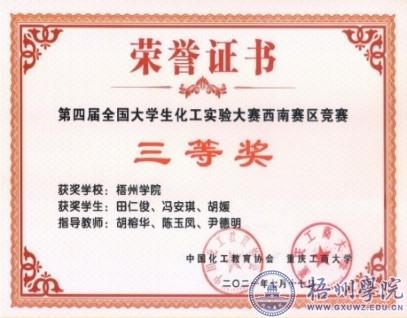 第四届全国大学生化工实验大赛西南赛区竞赛三等奖