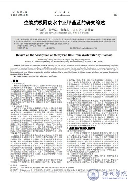 冯安琪2021年在知网上以第四作者发表了题为《生物质吸附废水中亚甲基蓝的研究综述》论文