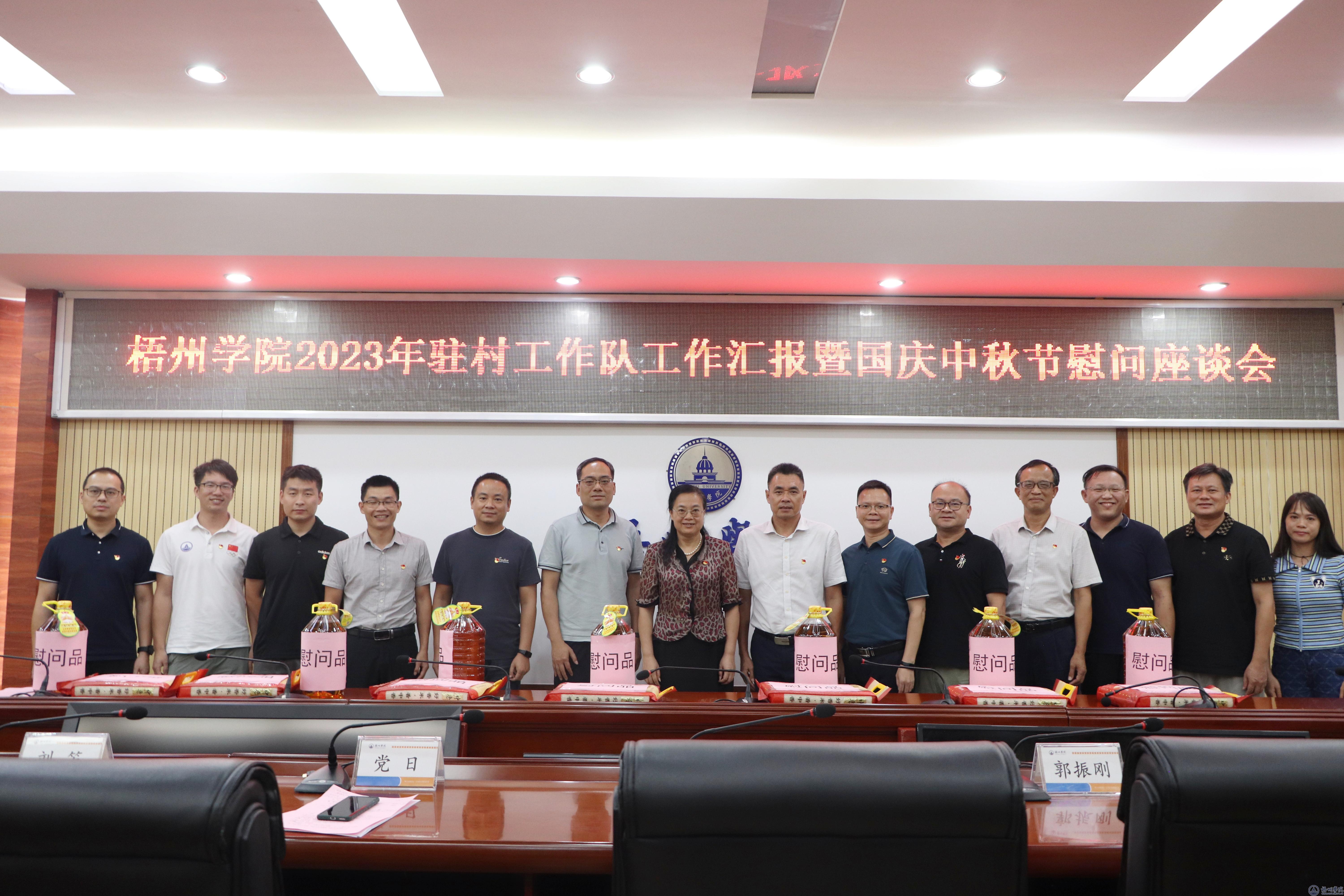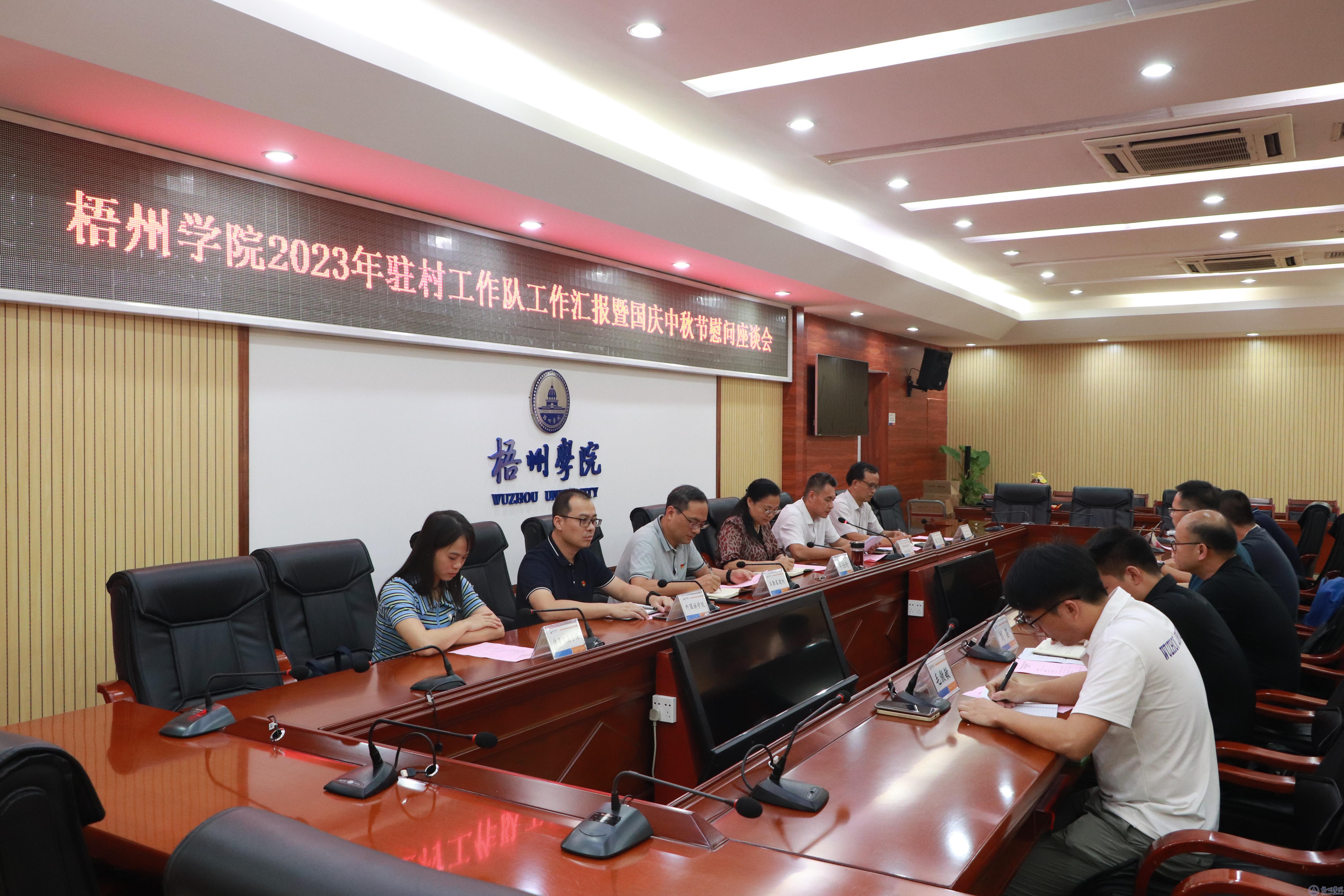 在国庆、中秋节来临之际,9月28日下午,学校在明理楼八楼第一会议室召开2023年驻村工作队工作汇报暨国庆中秋节慰问座谈会。学校党委书记韦仕珍,全体派驻蒙山县乡村振兴工作队队长、驻村第一书记及其选派所在单位、部门负责人参加会议。会议由学校党委常委、党委组织部部长黄健武主持。