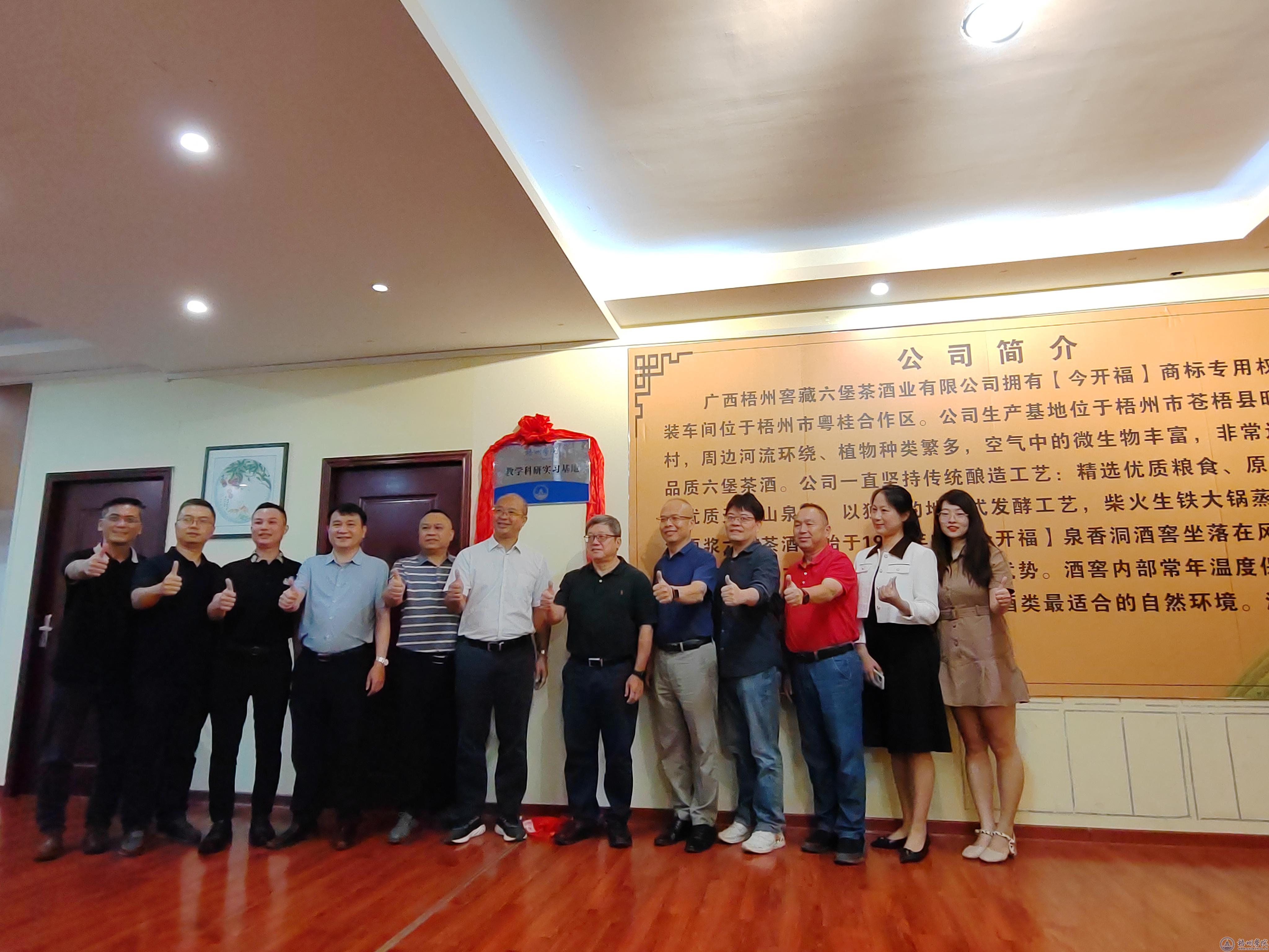 为了贯彻落实国家发展改革委、教育部、工信部等八部门日前联合印发《职业教育产教融合赋能提升行动实施方案(2023—2025年)》(以下简称《方案》)精神,10月8日,文学与传媒学院与梧州市今开福窖藏六堡茶酒企业共建教学科研实习基地举行揭牌仪式。学校校长杨奔、梧州市政协副主席李彤华出席揭牌仪式,梧州市茶产业发展中心副主任梁威龙、梧州市今开窖藏六堡茶酒总经理覃华锋,文学与传媒学院负责人参加揭牌仪式。