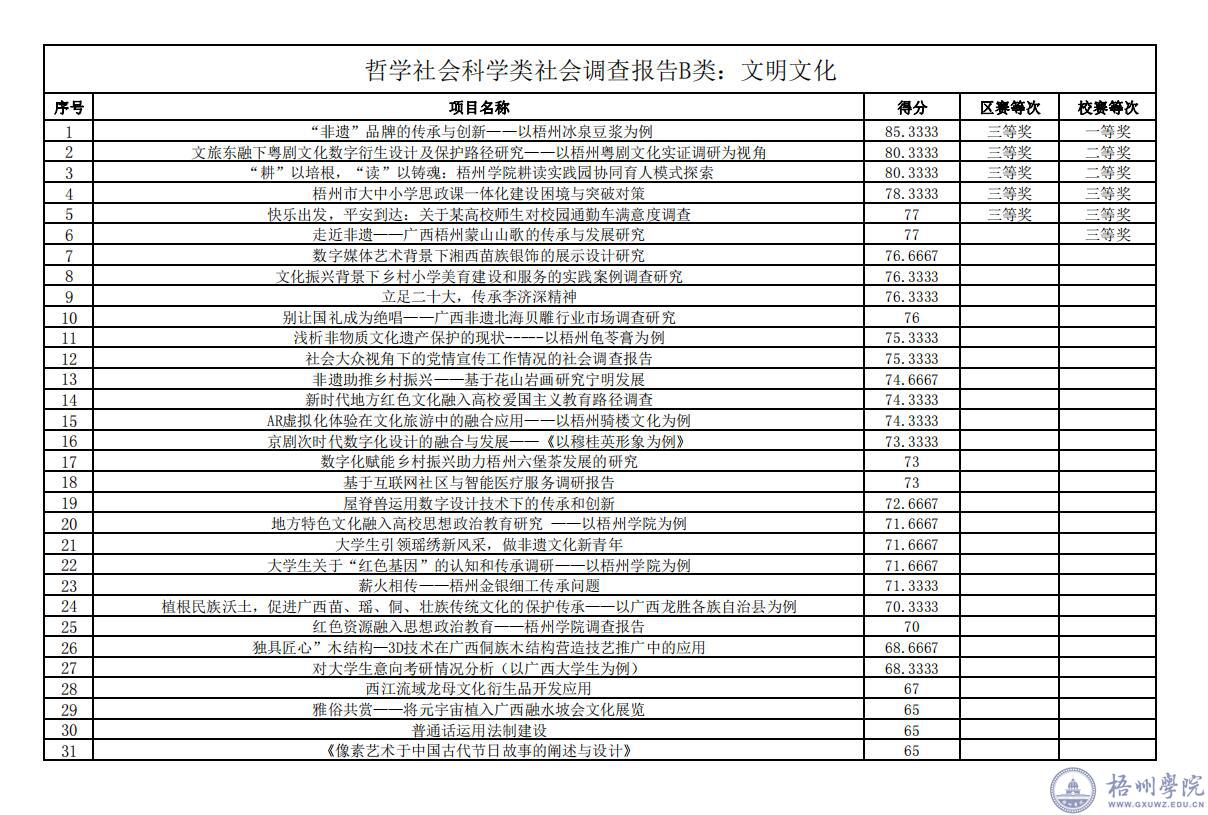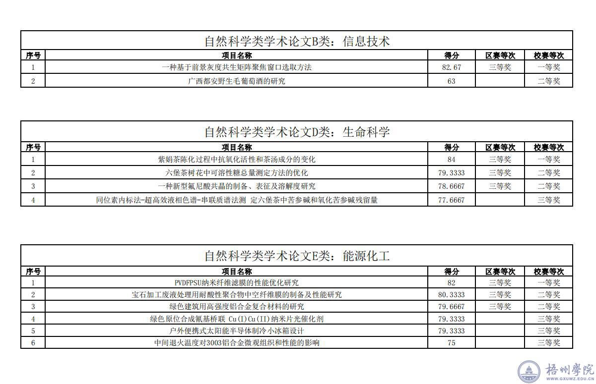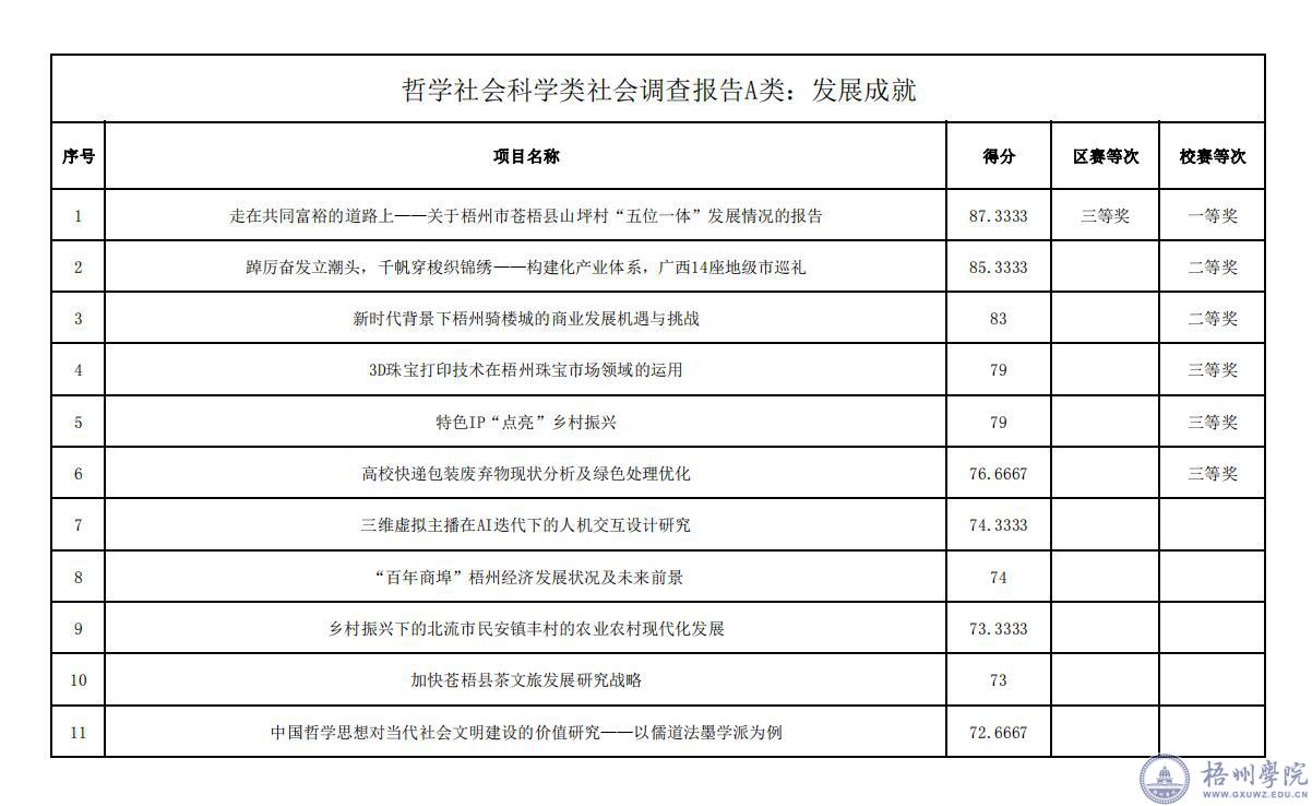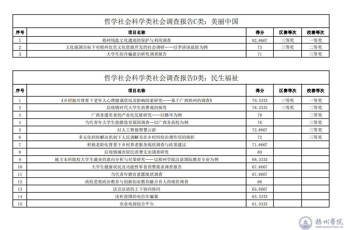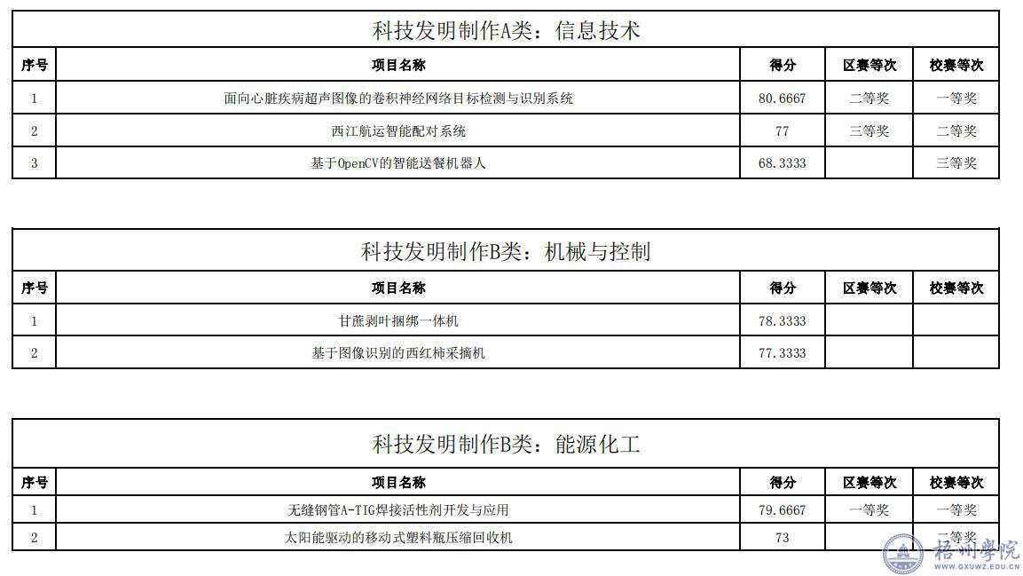2023年梧州学院“挑战杯”课外学术科技作品竞赛最终成绩排名和获奖等次